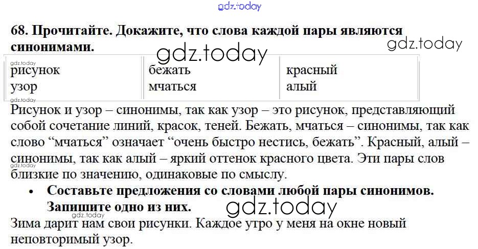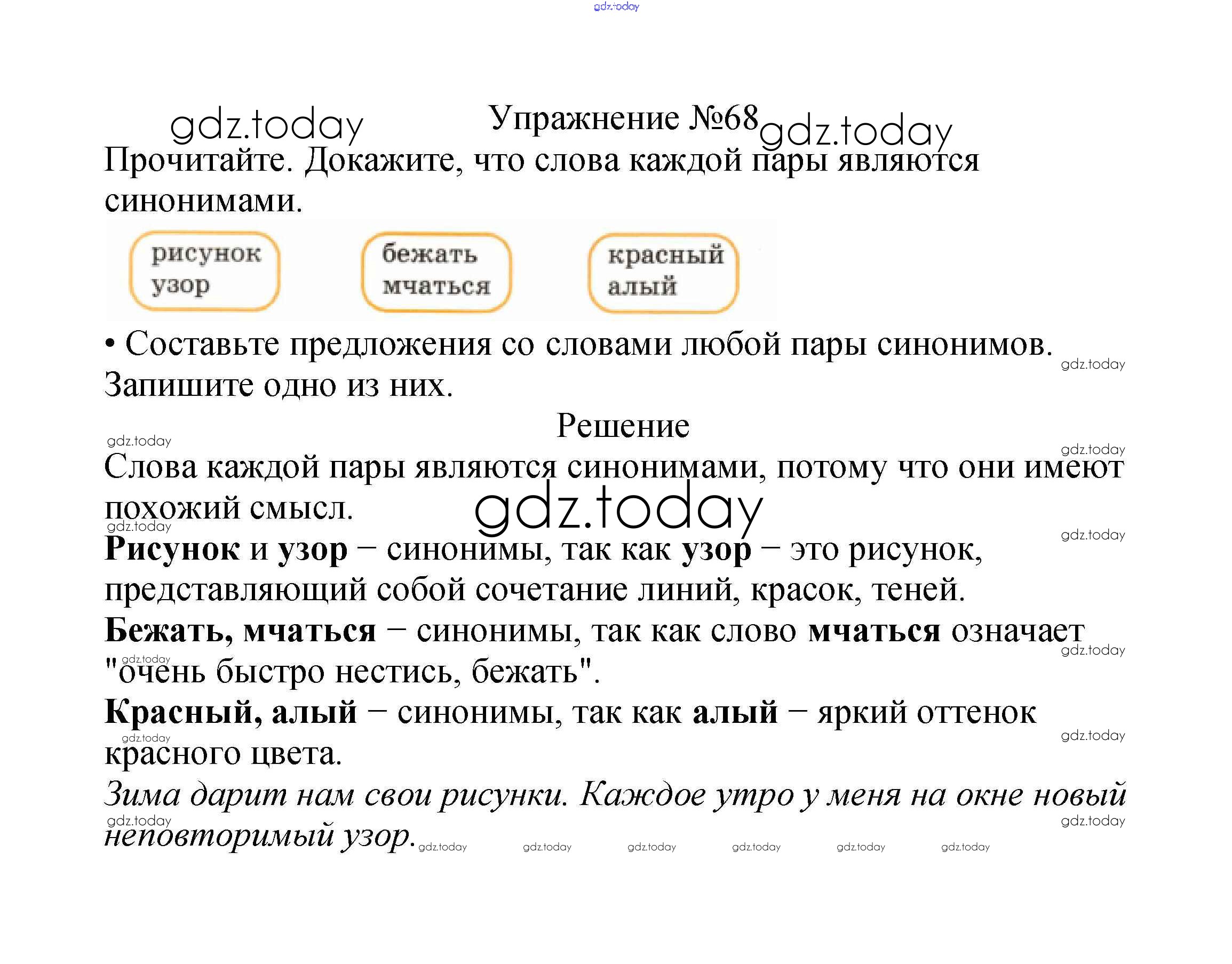 На страницах сайта gdz.today вы найдете учебный и вспомогательный материал, направленный на улучшения знаний школьной программы. ГДЗ - онлайн мир знаний Решение к части №1 (Упражнения) 68 Учебнику по Русскому языку для 2 класса Канакина, Горецкий Просвещение Школа России 2013