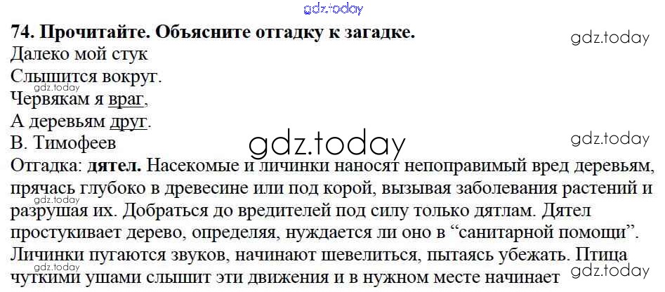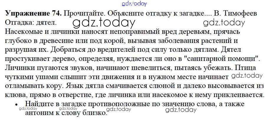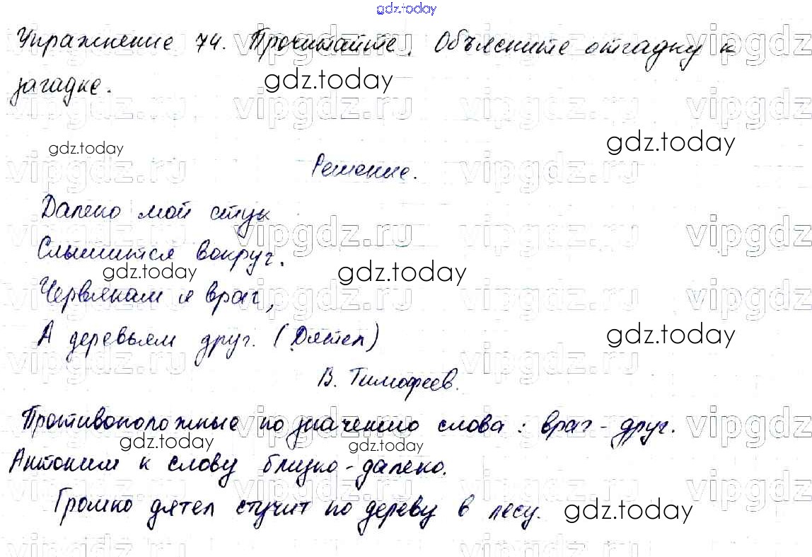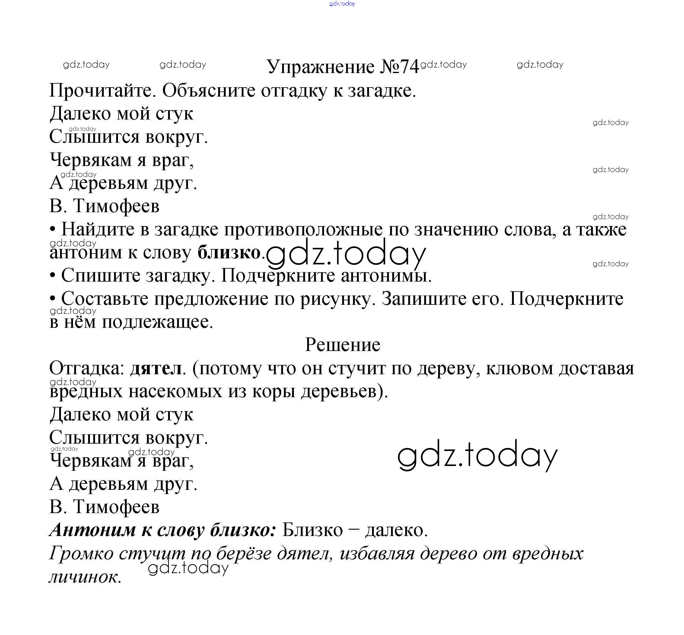 На страницах сайта gdz.today вы найдете учебный и вспомогательный материал, направленный на улучшения знаний школьной программы. ГДЗ - онлайн мир знаний Решение к части №1 (Упражнения) 74 Учебнику по Русскому языку для 2 класса Канакина, Горецкий Просвещение Школа России 2013