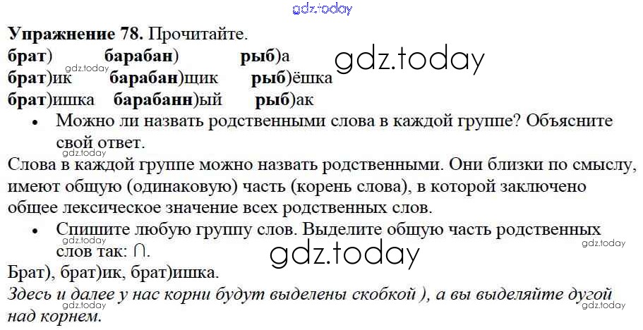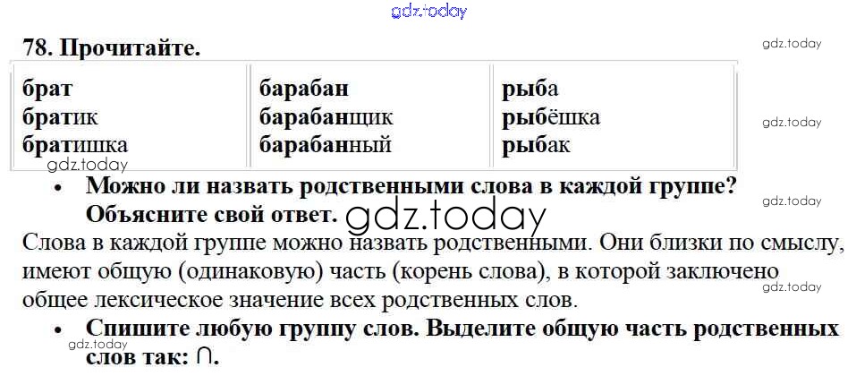 На страницах сайта gdz.today вы найдете учебный и вспомогательный материал, направленный на улучшения знаний школьной программы. ГДЗ - онлайн мир знаний Решение к части №1 (Упражнения) 78 Учебнику по Русскому языку для 2 класса Канакина, Горецкий Просвещение Школа России 2013