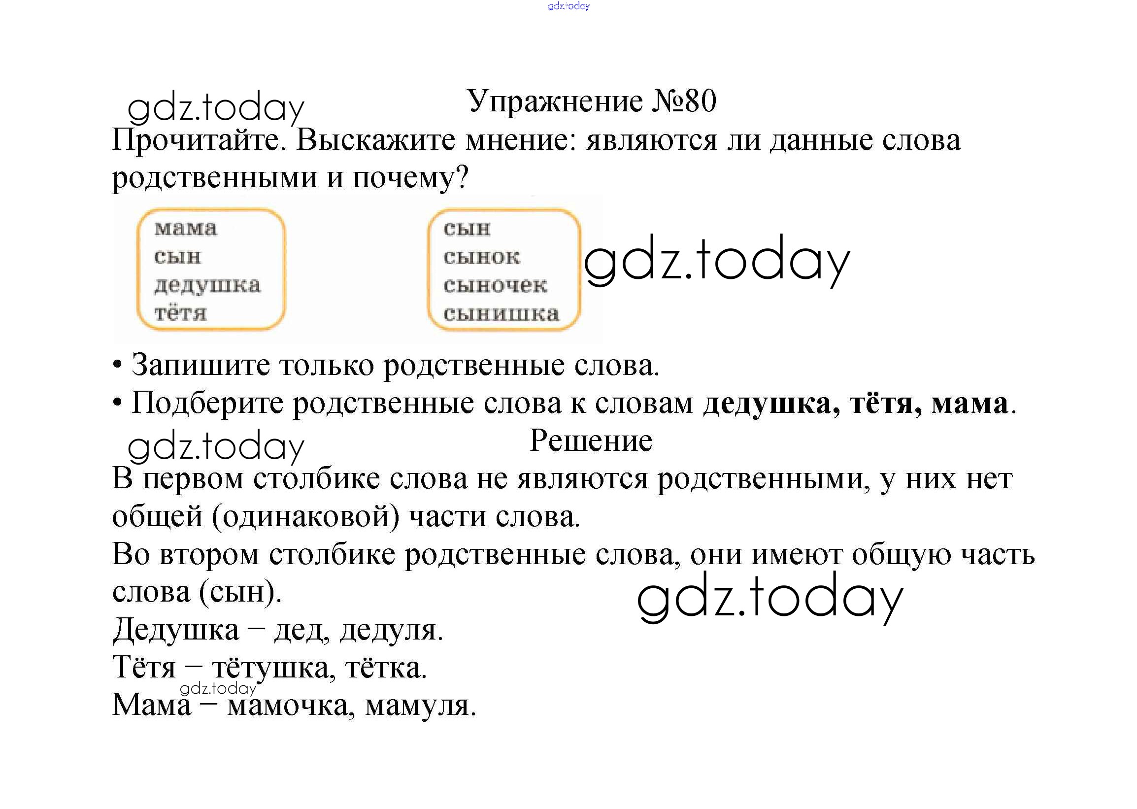 Ответы к Решение к части №1 (Упражнения) 80 Учебнику по Русскому языку для 2 класса Канакина, Горецкий Просвещение Школа России 2013