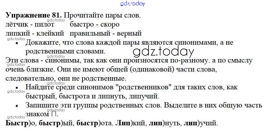 На страницах сайта gdz.today вы найдете учебный и вспомогательный материал, направленный на улучшения знаний школьной программы. ГДЗ - онлайн мир знаний Решение к части №1 (Упражнения) 81 Учебнику по Русскому языку для 2 класса Канакина, Горецкий Просвещение Школа России 2013