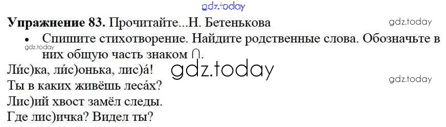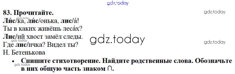 На страницах сайта gdz.today вы найдете учебный и вспомогательный материал, направленный на улучшения знаний школьной программы. ГДЗ - онлайн мир знаний Решение к части №1 (Упражнения) 83 Учебнику по Русскому языку для 2 класса Канакина, Горецкий Просвещение Школа России 2013