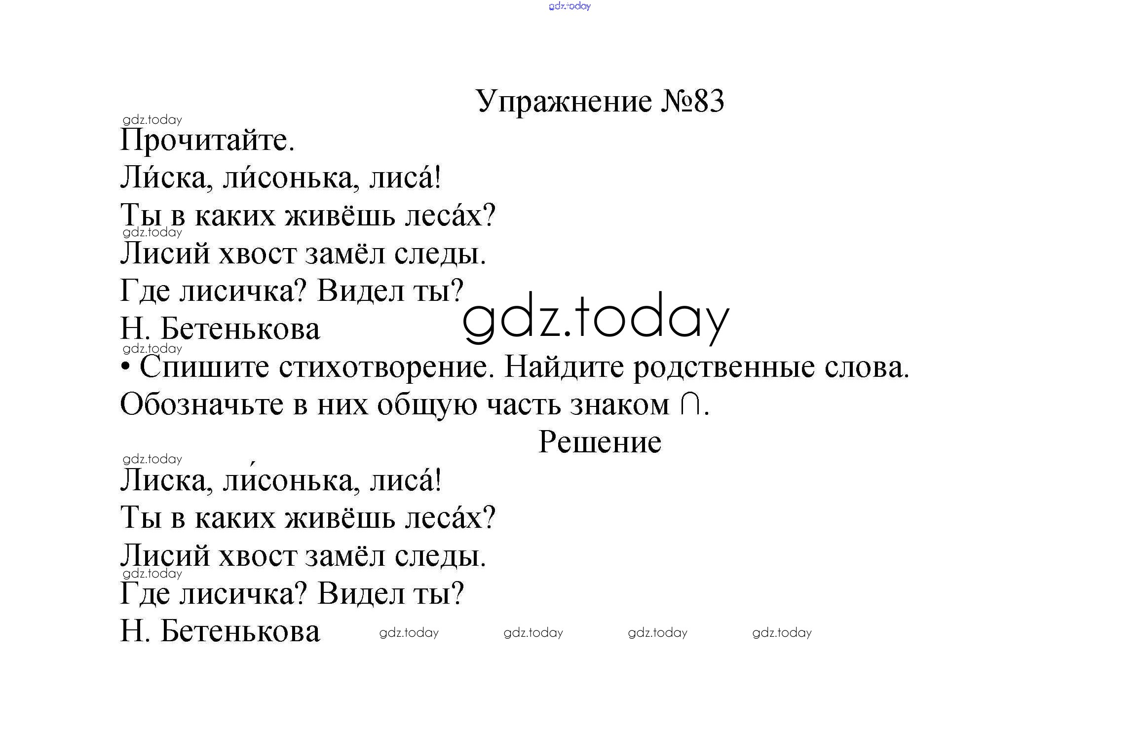 Ответы к Решение к части №1 (Упражнения) 83 Учебнику по Русскому языку для 2 класса Канакина, Горецкий Просвещение Школа России 2013