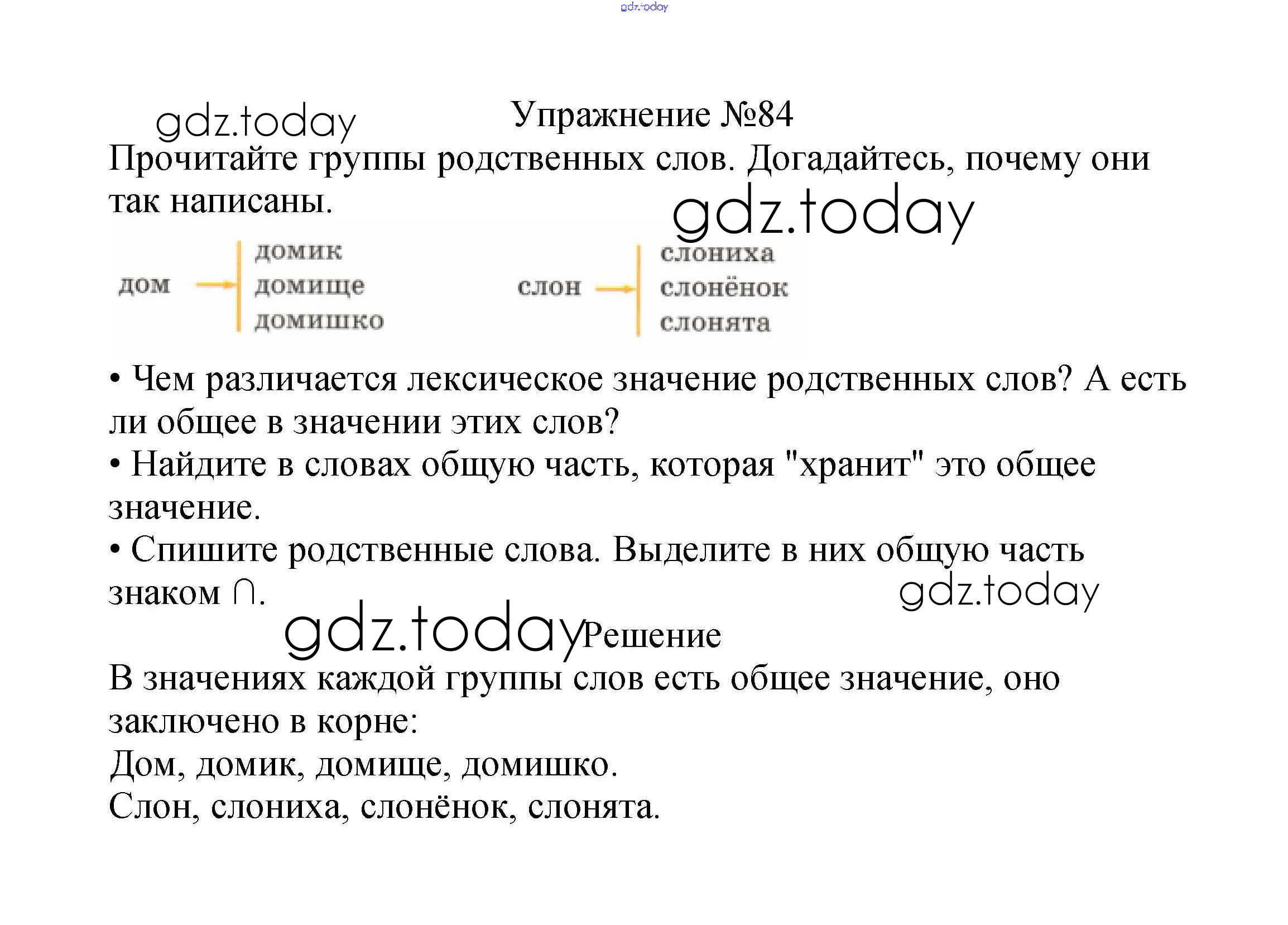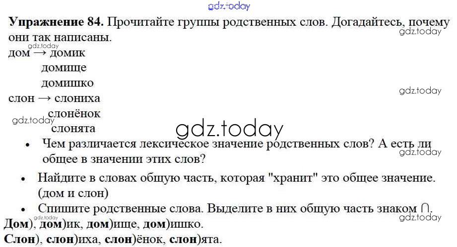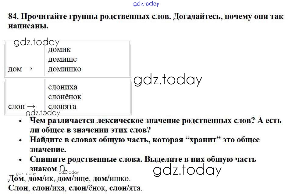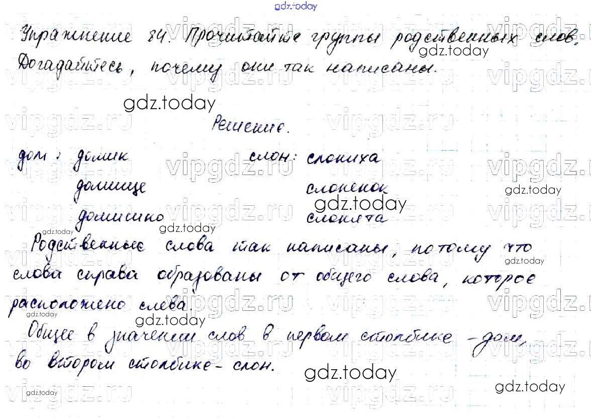 На страницах сайта gdz.today вы найдете учебный и вспомогательный материал, направленный на улучшения знаний школьной программы. ГДЗ - онлайн мир знаний Решение к части №1 (Упражнения) 84 Учебнику по Русскому языку для 2 класса Канакина, Горецкий Просвещение Школа России 2013