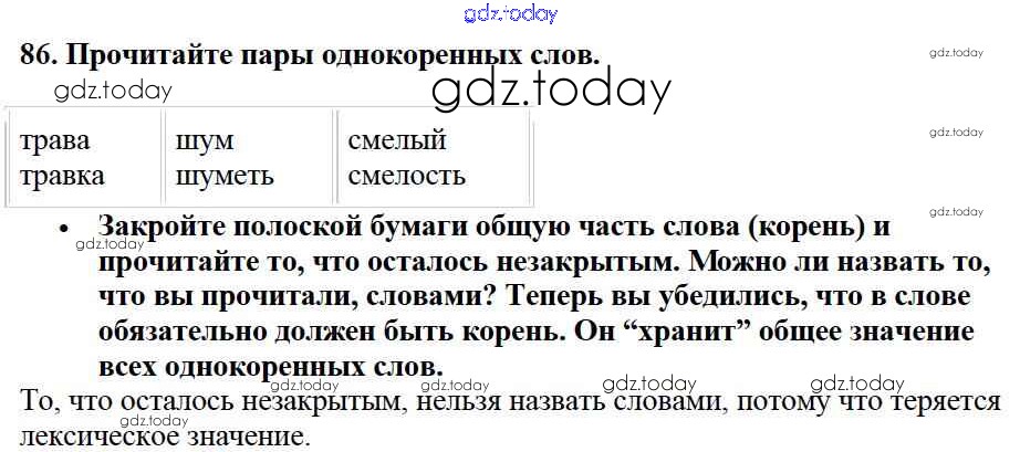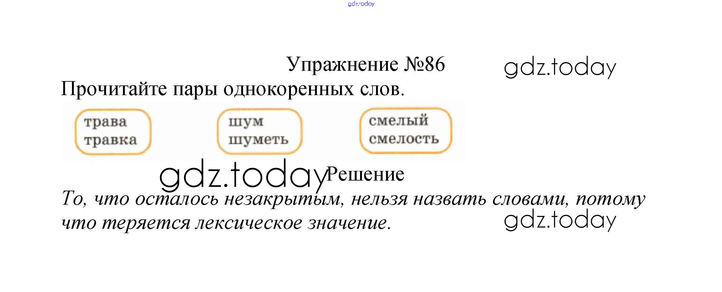 На страницах сайта gdz.today вы найдете учебный и вспомогательный материал, направленный на улучшения знаний школьной программы. ГДЗ - онлайн мир знаний Решение к части №1 (Упражнения) 86 Учебнику по Русскому языку для 2 класса Канакина, Горецкий Просвещение Школа России 2013