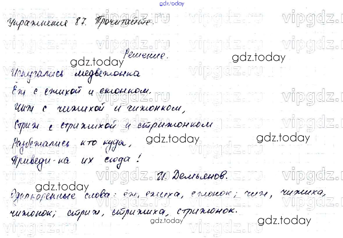 Ответы к Решение к части №1 (Упражнения) 87 Учебнику по Русскому языку для 2 класса Канакина, Горецкий Просвещение Школа России 2013
