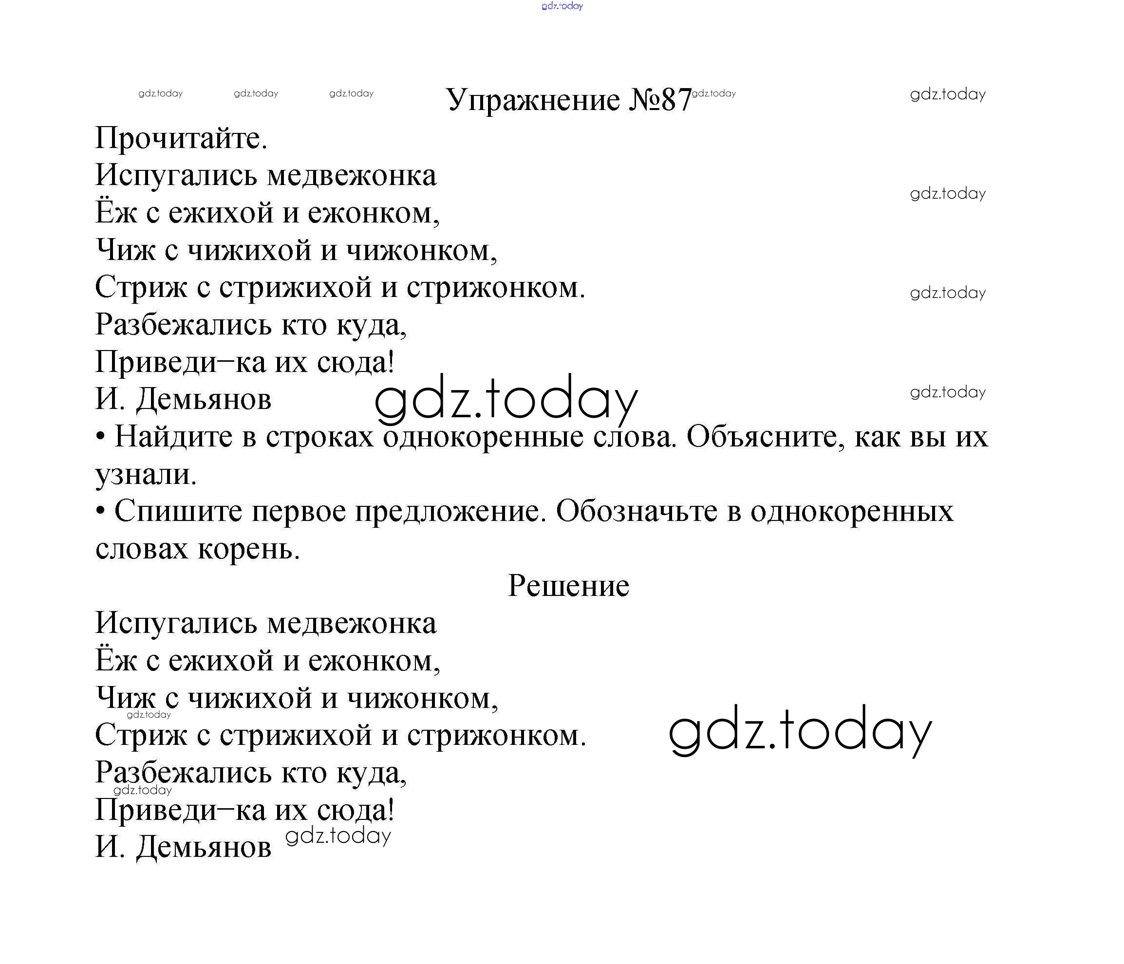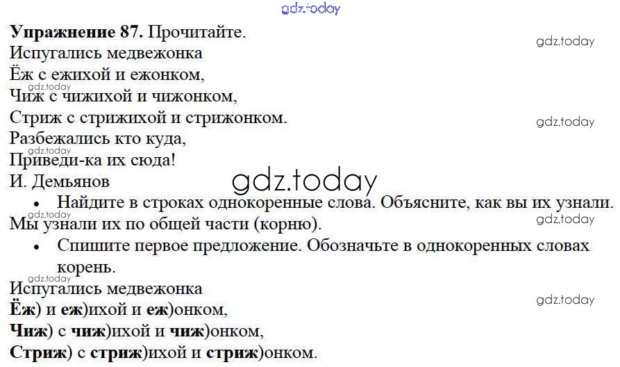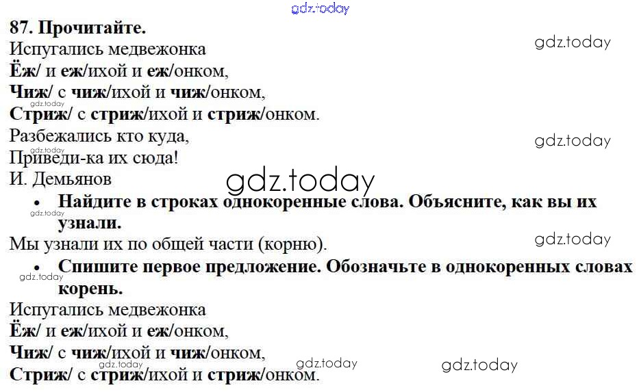 На страницах сайта gdz.today вы найдете учебный и вспомогательный материал, направленный на улучшения знаний школьной программы. ГДЗ - онлайн мир знаний Решение к части №1 (Упражнения) 87 Учебнику по Русскому языку для 2 класса Канакина, Горецкий Просвещение Школа России 2013