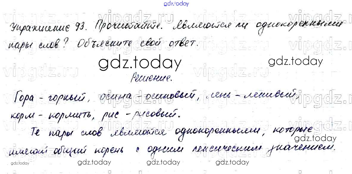 На страницах сайта gdz.today вы найдете учебный и вспомогательный материал, направленный на улучшения знаний школьной программы. ГДЗ - онлайн мир знаний Решение к части №1 (Упражнения) 93 Учебнику по Русскому языку для 2 класса Канакина, Горецкий Просвещение Школа России 2013