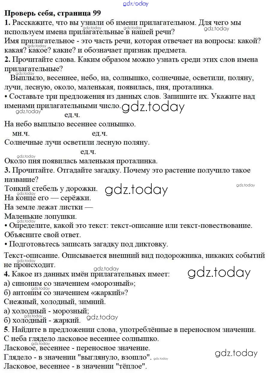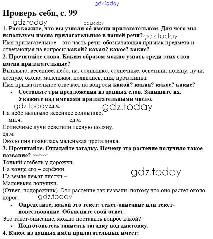 На страницах сайта gdz.today вы найдете учебный и вспомогательный материал, направленный на улучшения знаний школьной программы. ГДЗ - онлайн мир знаний Проверь себя Решение к части №2 (Упражнения) стр. 99 Учебнику по Русскому языку для 2 класса Канакина, Горецкий Просвещение Школа России 2013