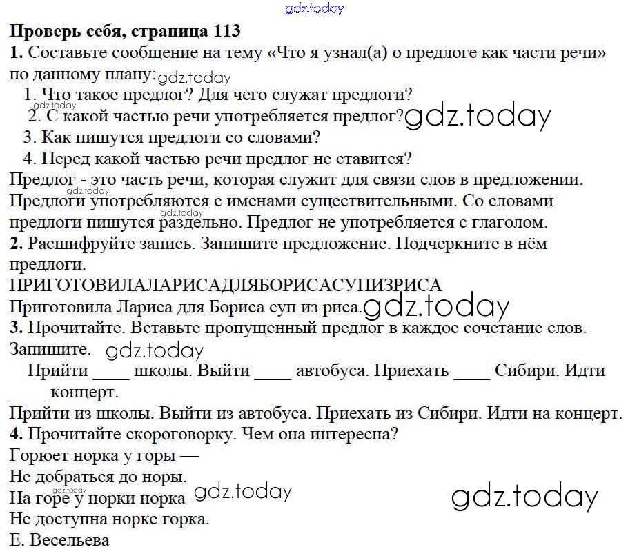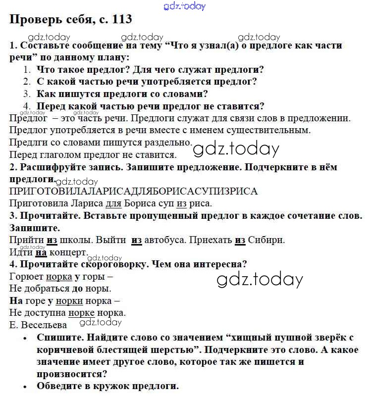 На страницах сайта gdz.today вы найдете учебный и вспомогательный материал, направленный на улучшения знаний школьной программы. ГДЗ - онлайн мир знаний Проверь себя Решение к части №2 (Упражнения) стр. 113 Учебнику по Русскому языку для 2 класса Канакина, Горецкий Просвещение Школа России 2013