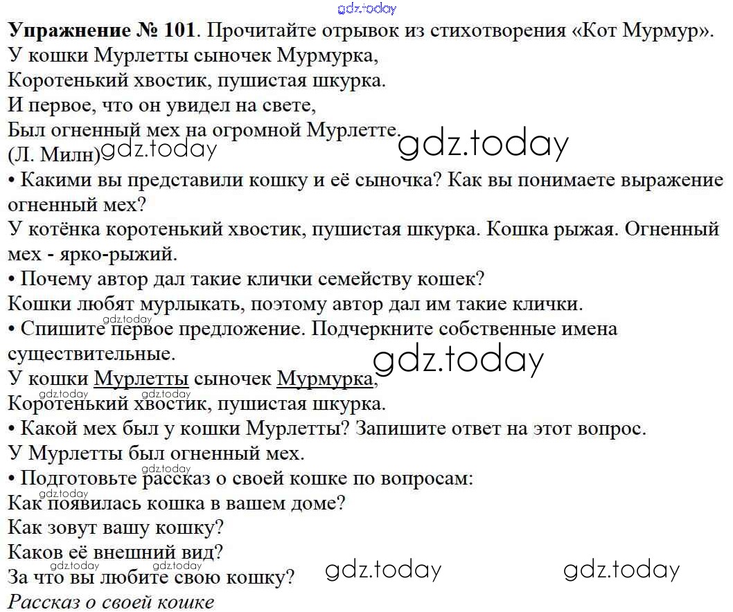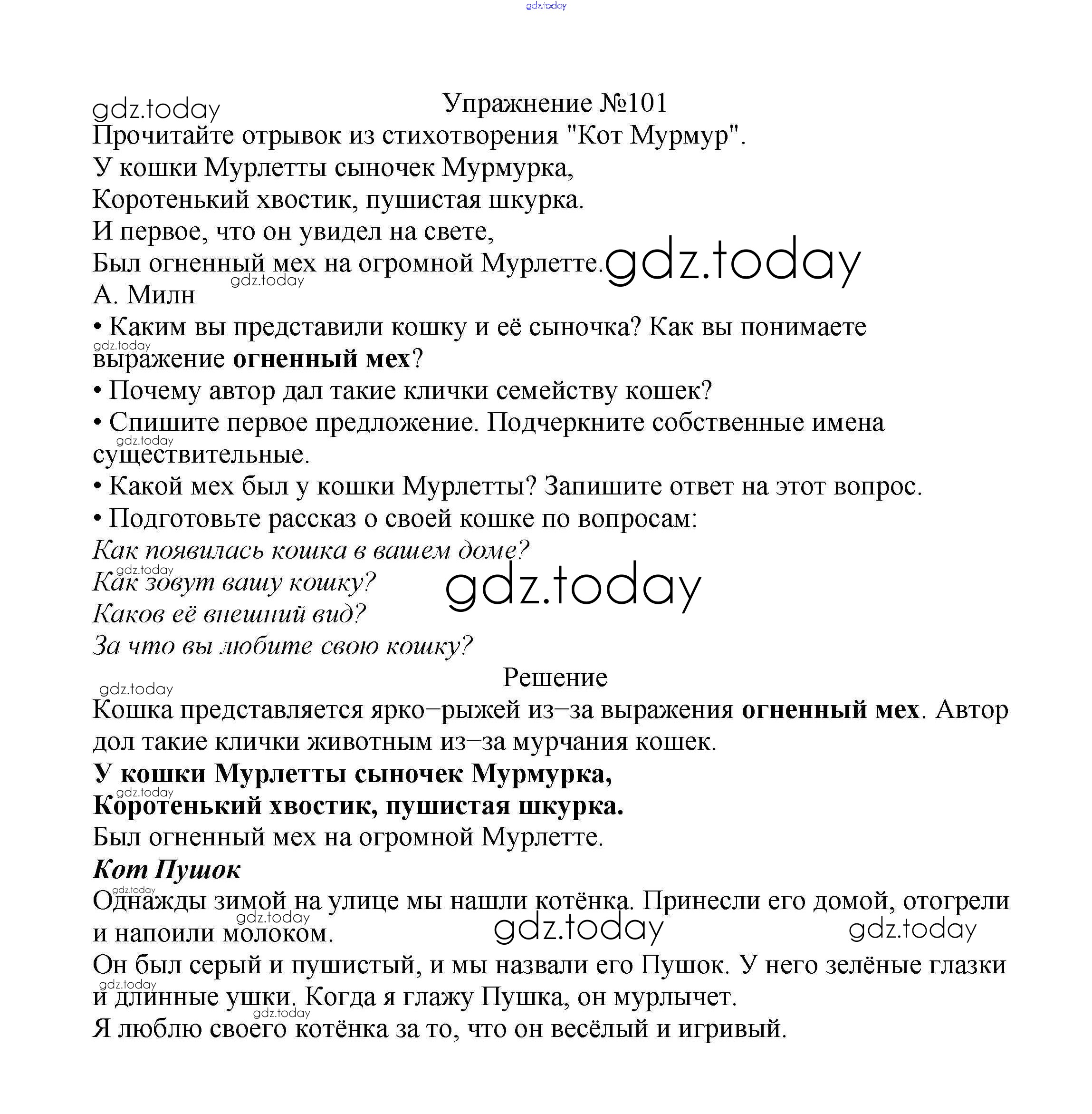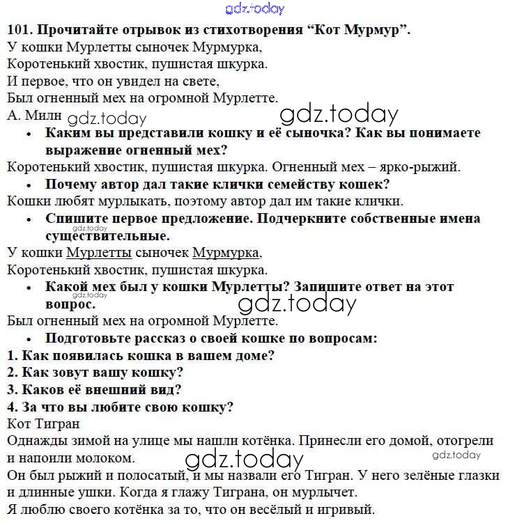 На страницах сайта gdz.today вы найдете учебный и вспомогательный материал, направленный на улучшения знаний школьной программы. ГДЗ - онлайн мир знаний Решение к части №2 (Упражнения) 101 Учебнику по Русскому языку для 2 класса Канакина, Горецкий Просвещение Школа России 2013