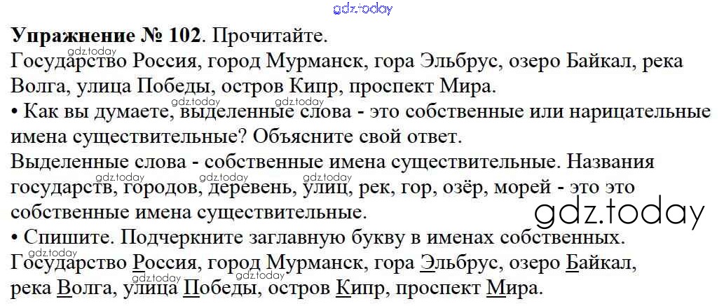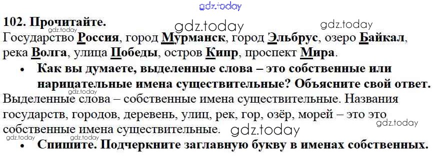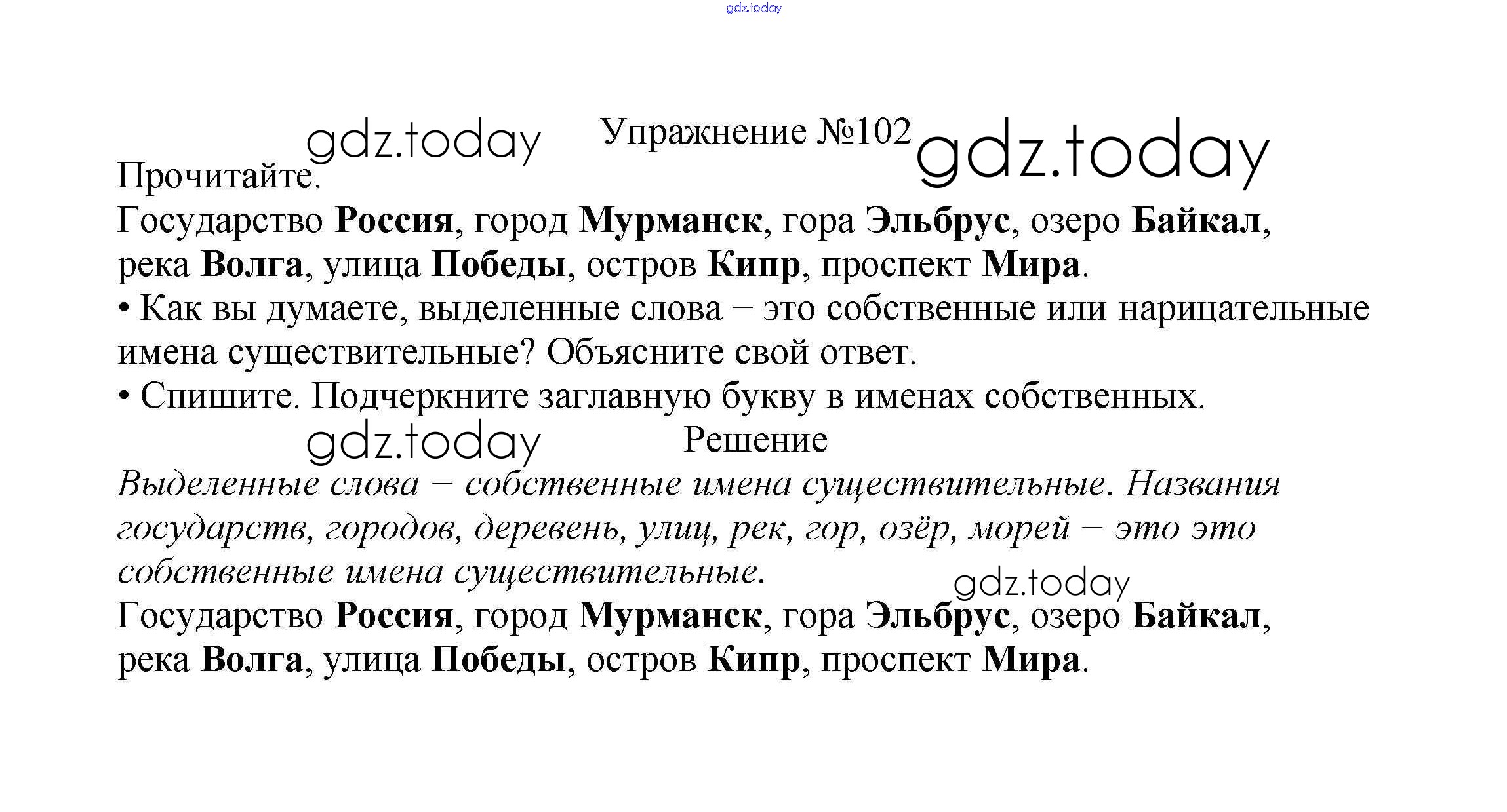 На страницах сайта gdz.today вы найдете учебный и вспомогательный материал, направленный на улучшения знаний школьной программы. ГДЗ - онлайн мир знаний Решение к части №2 (Упражнения) 102 Учебнику по Русскому языку для 2 класса Канакина, Горецкий Просвещение Школа России 2013