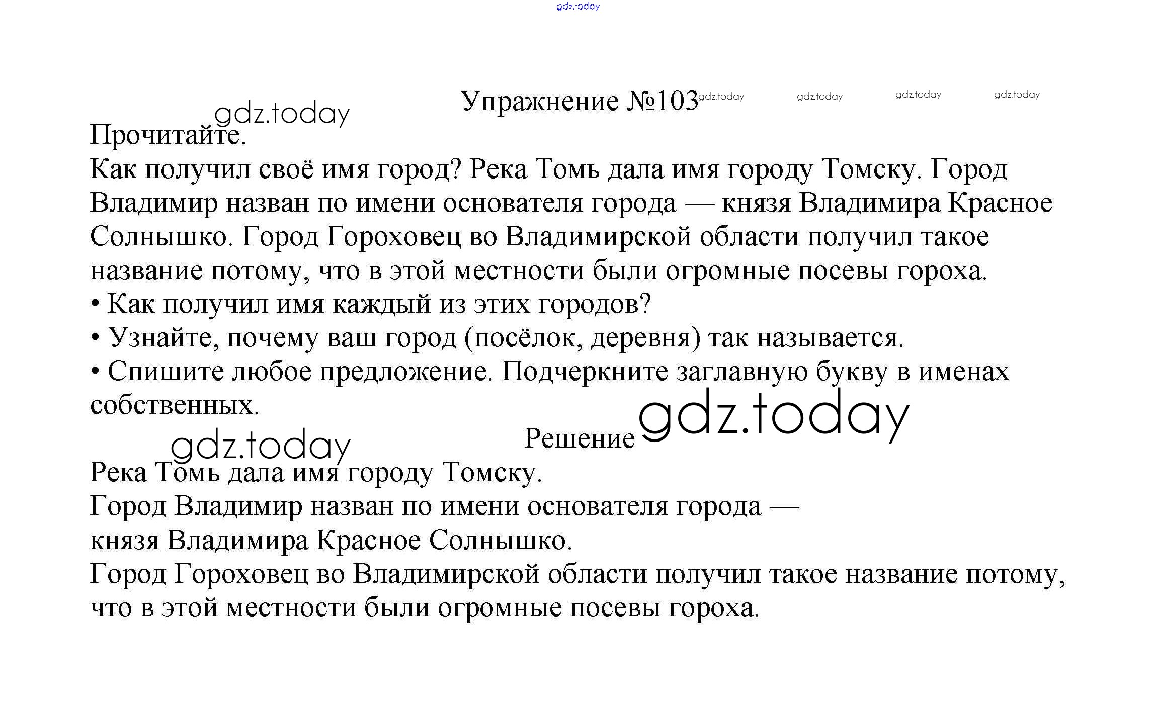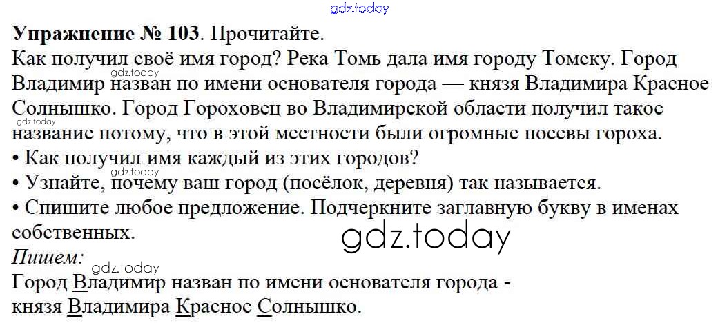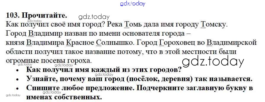 На страницах сайта gdz.today вы найдете учебный и вспомогательный материал, направленный на улучшения знаний школьной программы. ГДЗ - онлайн мир знаний Решение к части №2 (Упражнения) 103 Учебнику по Русскому языку для 2 класса Канакина, Горецкий Просвещение Школа России 2013
