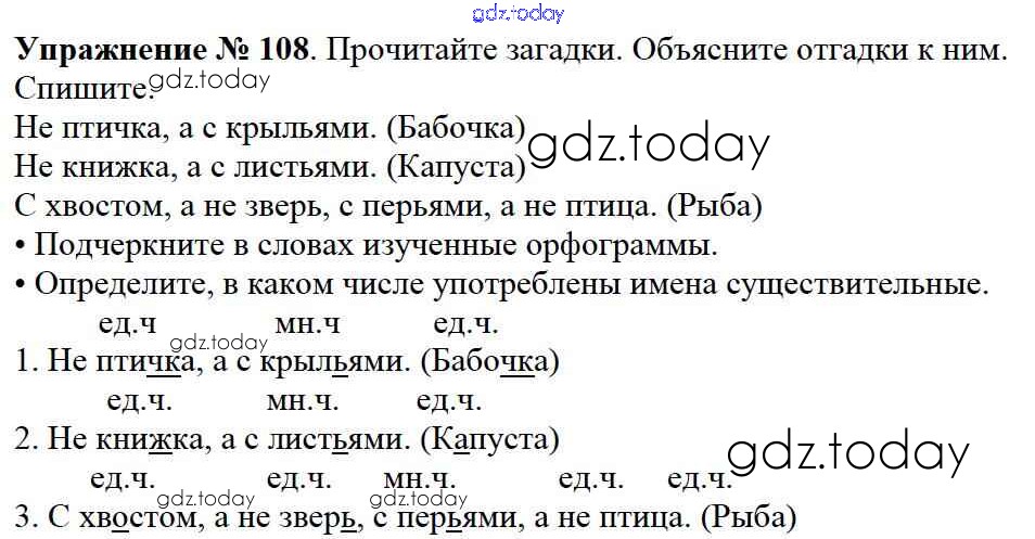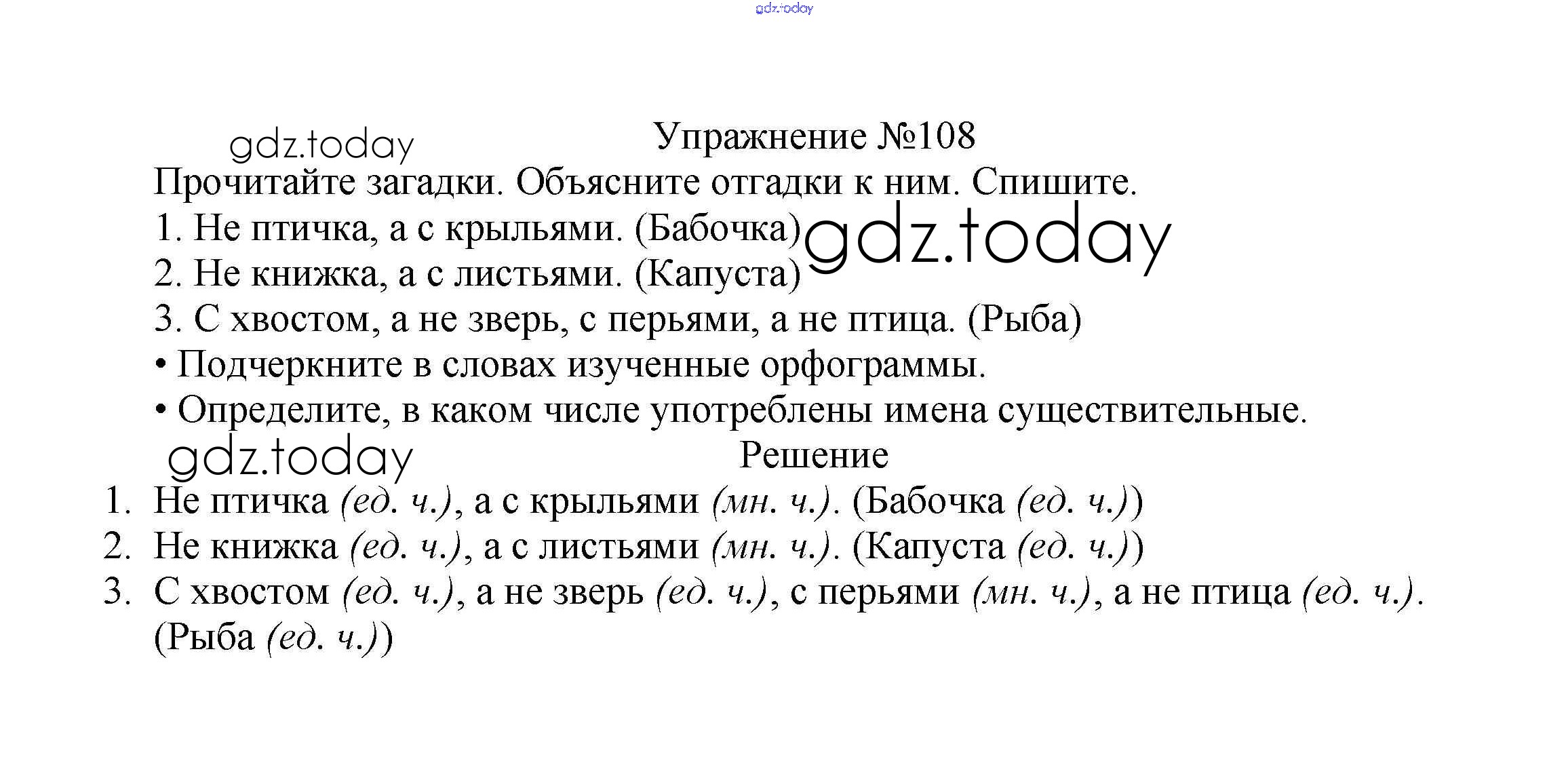 На страницах сайта gdz.today вы найдете учебный и вспомогательный материал, направленный на улучшения знаний школьной программы. ГДЗ - онлайн мир знаний Решение к части №2 (Упражнения) 108 Учебнику по Русскому языку для 2 класса Канакина, Горецкий Просвещение Школа России 2013