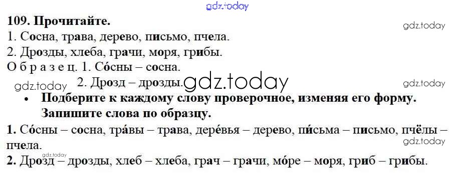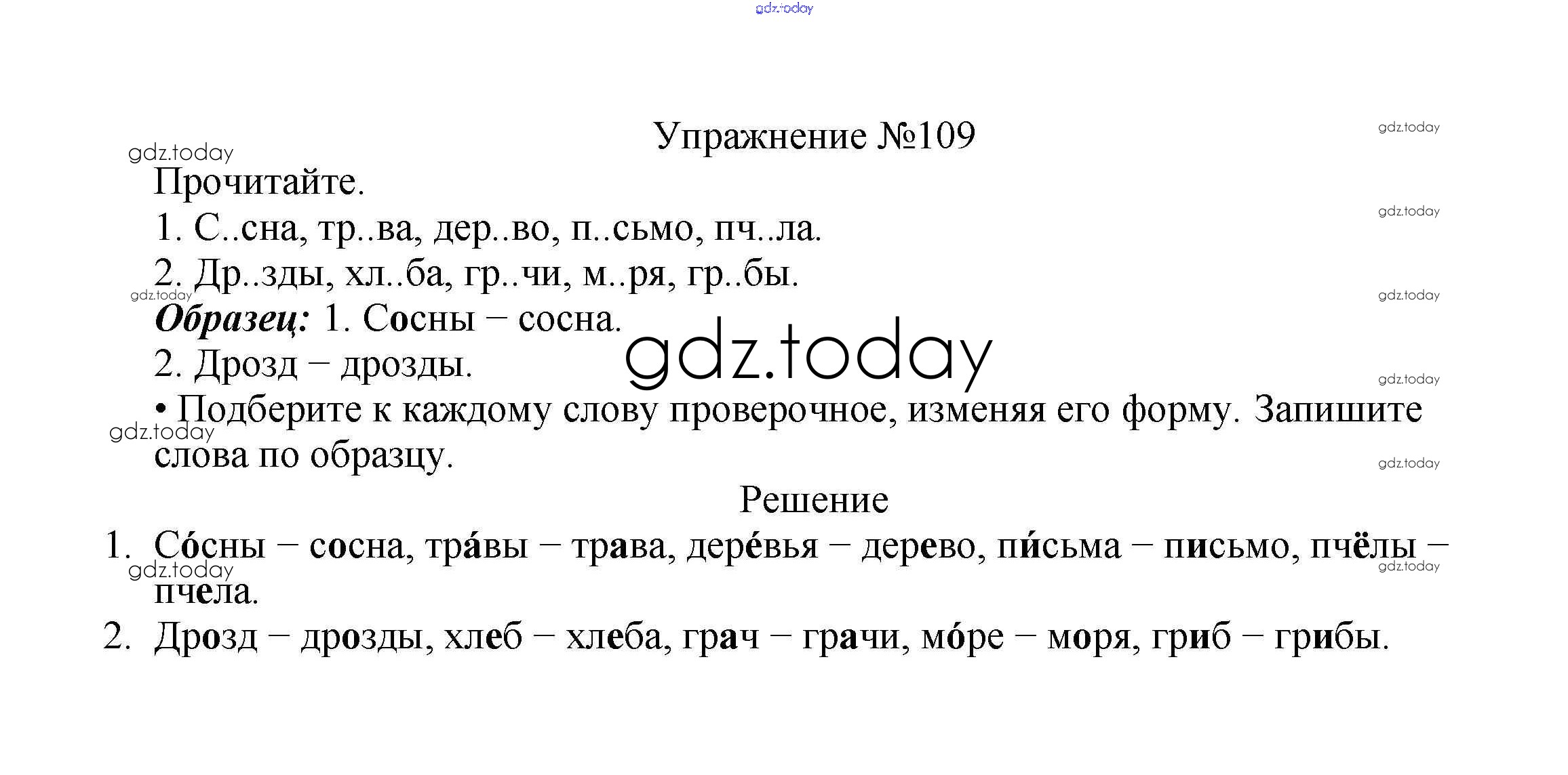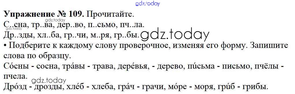 На страницах сайта gdz.today вы найдете учебный и вспомогательный материал, направленный на улучшения знаний школьной программы. ГДЗ - онлайн мир знаний Решение к части №2 (Упражнения) 109 Учебнику по Русскому языку для 2 класса Канакина, Горецкий Просвещение Школа России 2013