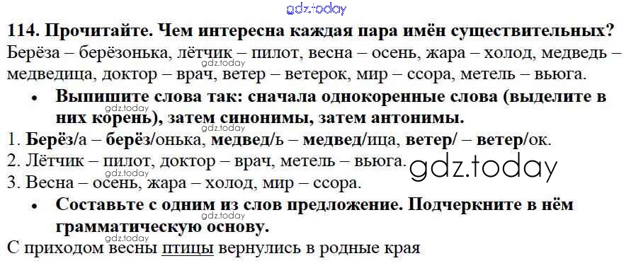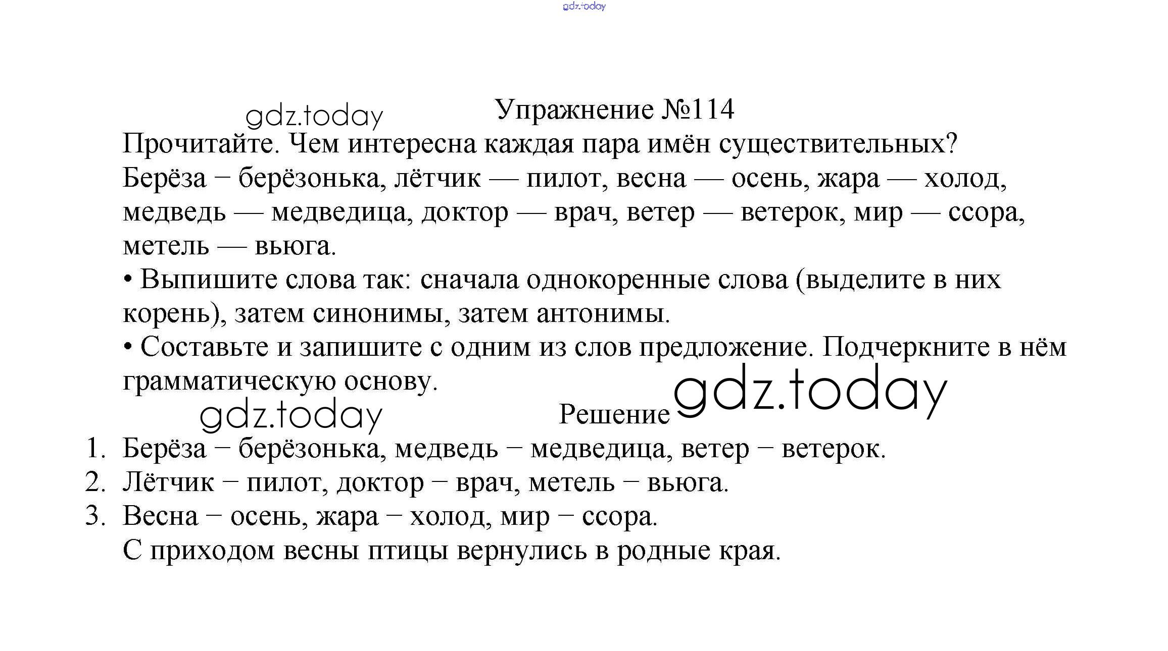 На страницах сайта gdz.today вы найдете учебный и вспомогательный материал, направленный на улучшения знаний школьной программы. ГДЗ - онлайн мир знаний Решение к части №2 (Упражнения) 114 Учебнику по Русскому языку для 2 класса Канакина, Горецкий Просвещение Школа России 2013