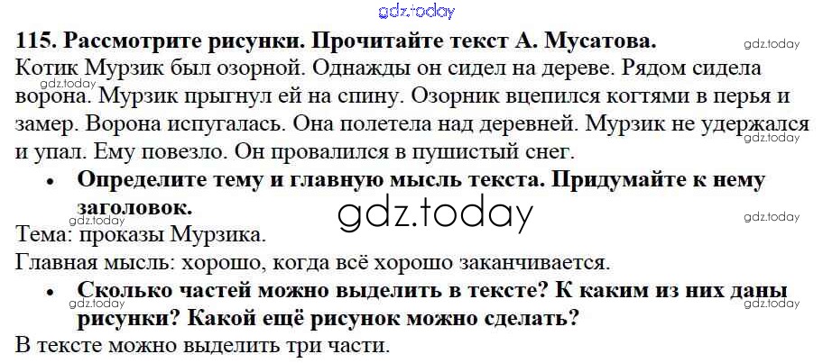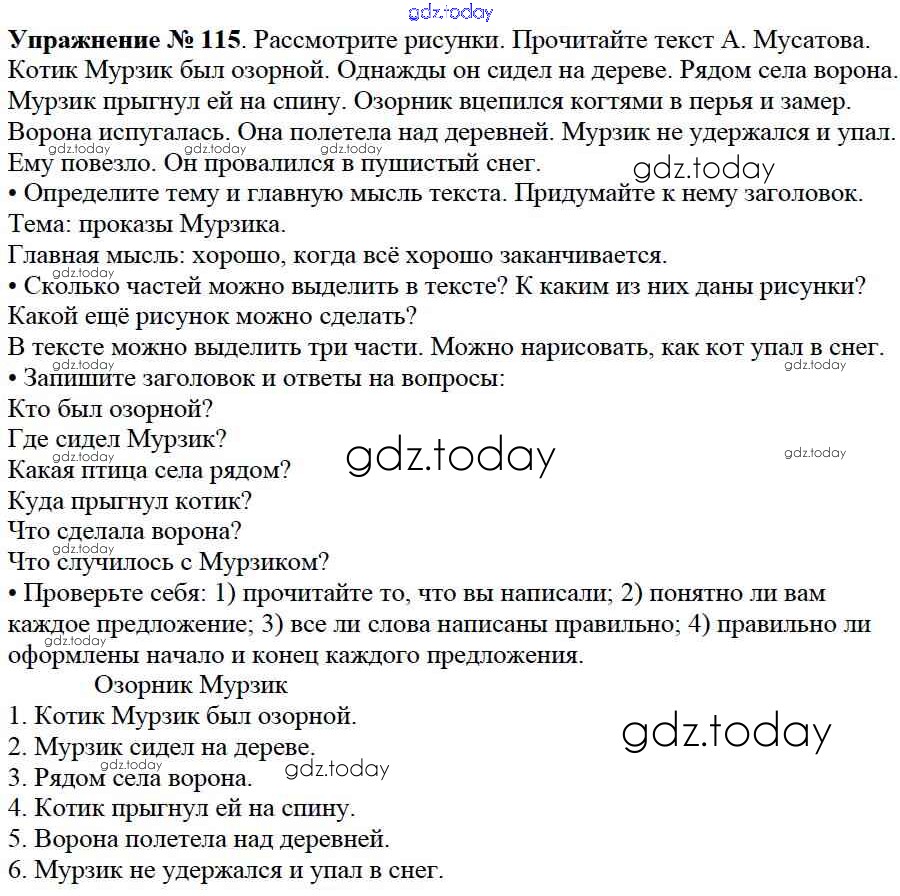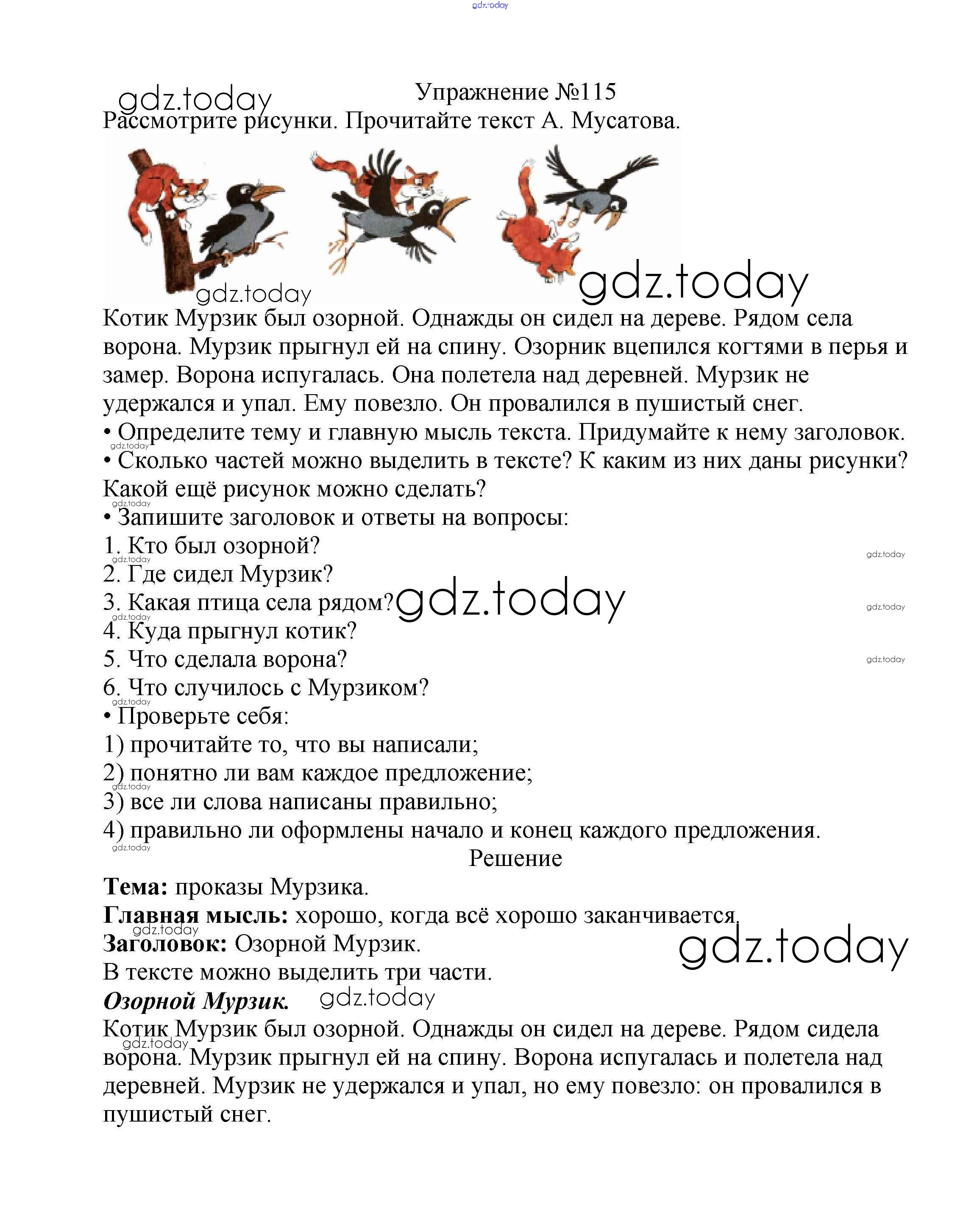 На страницах сайта gdz.today вы найдете учебный и вспомогательный материал, направленный на улучшения знаний школьной программы. ГДЗ - онлайн мир знаний Решение к части №2 (Упражнения) 115 Учебнику по Русскому языку для 2 класса Канакина, Горецкий Просвещение Школа России 2013