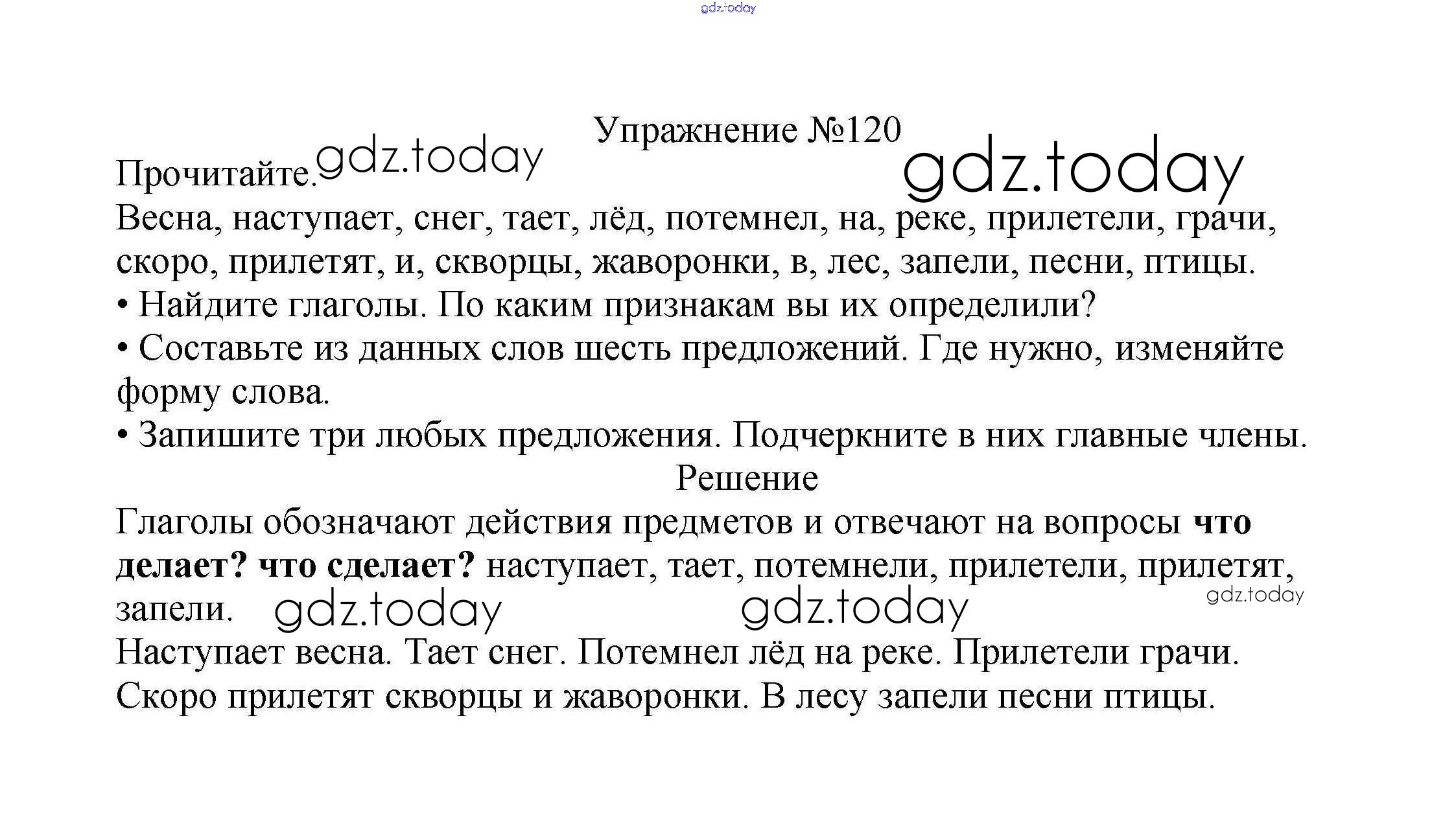 Ответы к Решение к части №2 (Упражнения) 120 Учебнику по Русскому языку для 2 класса Канакина, Горецкий Просвещение Школа России 2013