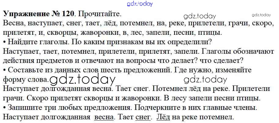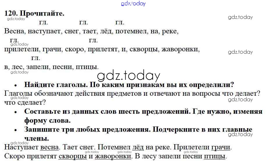 На страницах сайта gdz.today вы найдете учебный и вспомогательный материал, направленный на улучшения знаний школьной программы. ГДЗ - онлайн мир знаний Решение к части №2 (Упражнения) 120 Учебнику по Русскому языку для 2 класса Канакина, Горецкий Просвещение Школа России 2013