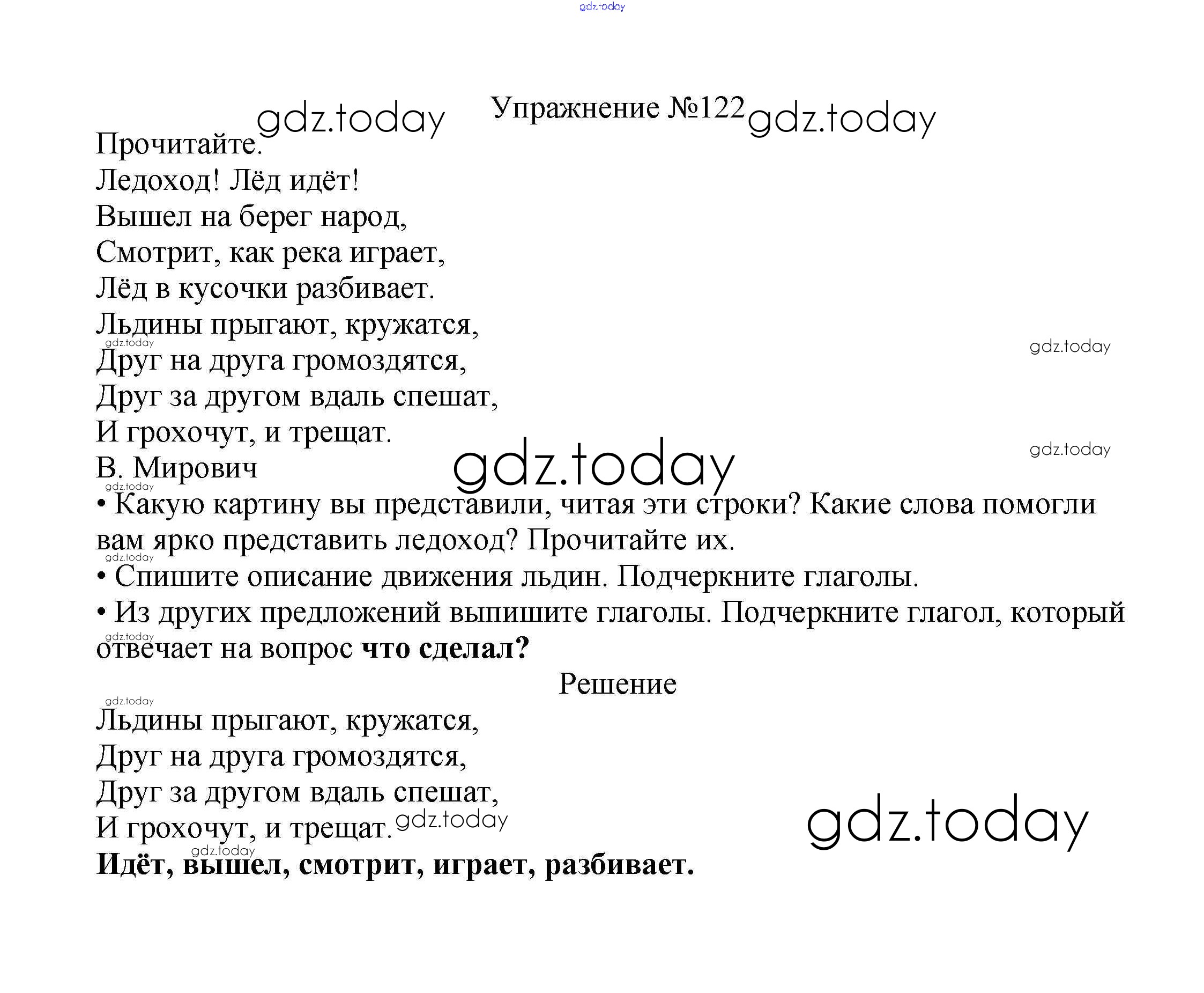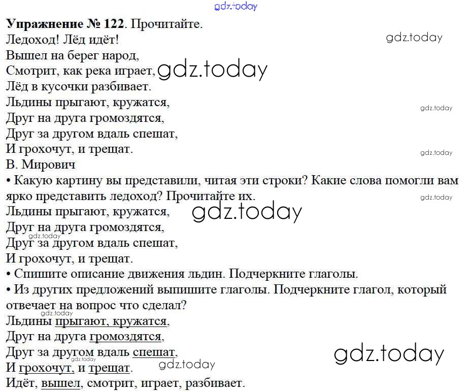 На страницах сайта gdz.today вы найдете учебный и вспомогательный материал, направленный на улучшения знаний школьной программы. ГДЗ - онлайн мир знаний Решение к части №2 (Упражнения) 122 Учебнику по Русскому языку для 2 класса Канакина, Горецкий Просвещение Школа России 2013