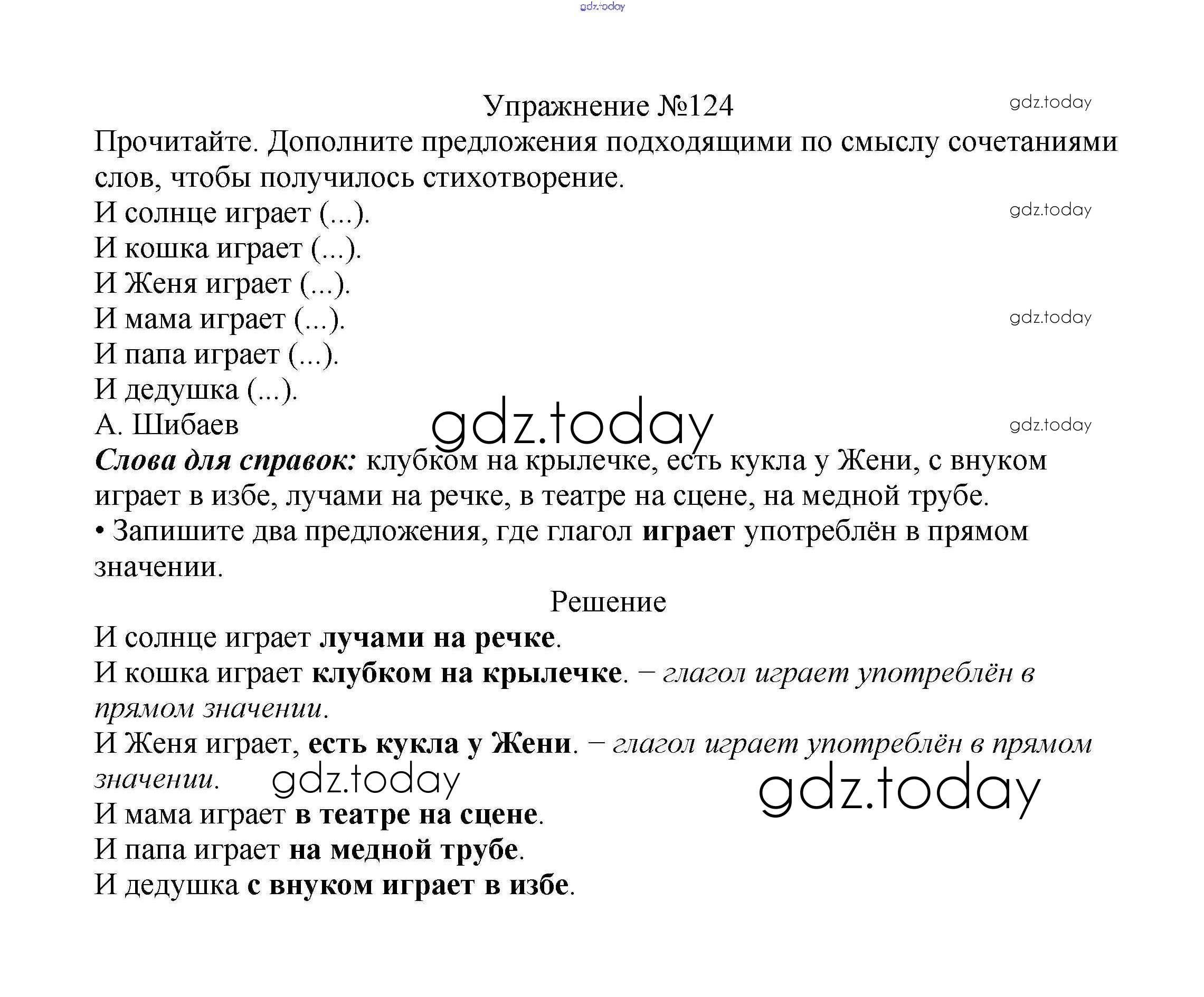 Ответы к Решение к части №2 (Упражнения) 124 Учебнику по Русскому языку для 2 класса Канакина, Горецкий Просвещение Школа России 2013
