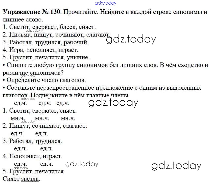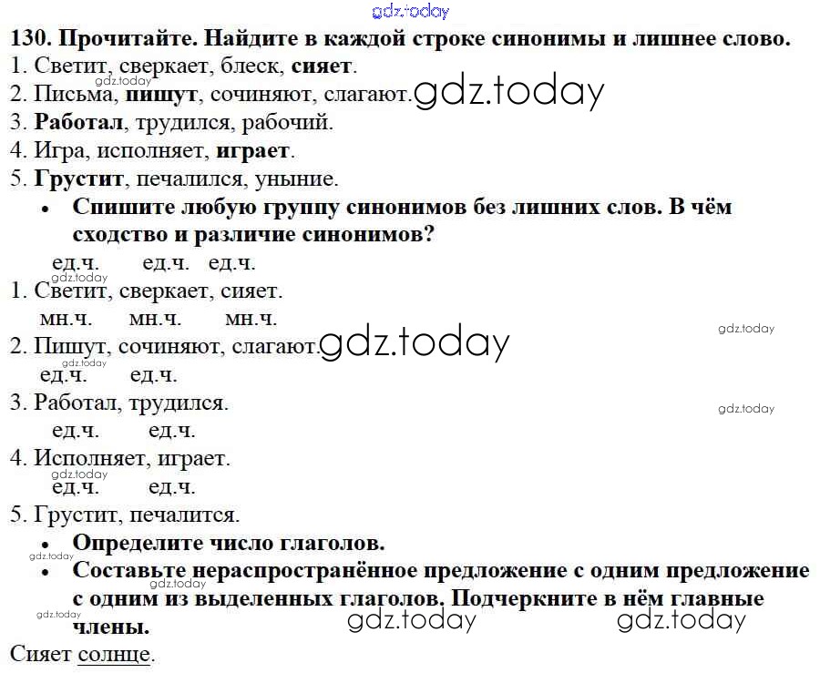 На страницах сайта gdz.today вы найдете учебный и вспомогательный материал, направленный на улучшения знаний школьной программы. ГДЗ - онлайн мир знаний Решение к части №2 (Упражнения) 130 Учебнику по Русскому языку для 2 класса Канакина, Горецкий Просвещение Школа России 2013