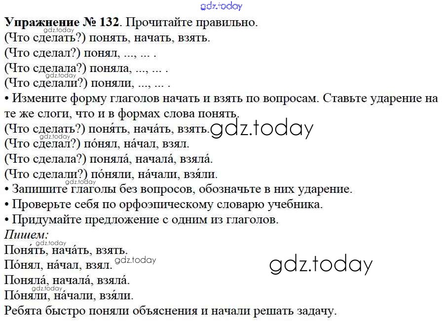На страницах сайта gdz.today вы найдете учебный и вспомогательный материал, направленный на улучшения знаний школьной программы. ГДЗ - онлайн мир знаний Решение к части №2 (Упражнения) 132 Учебнику по Русскому языку для 2 класса Канакина, Горецкий Просвещение Школа России 2013