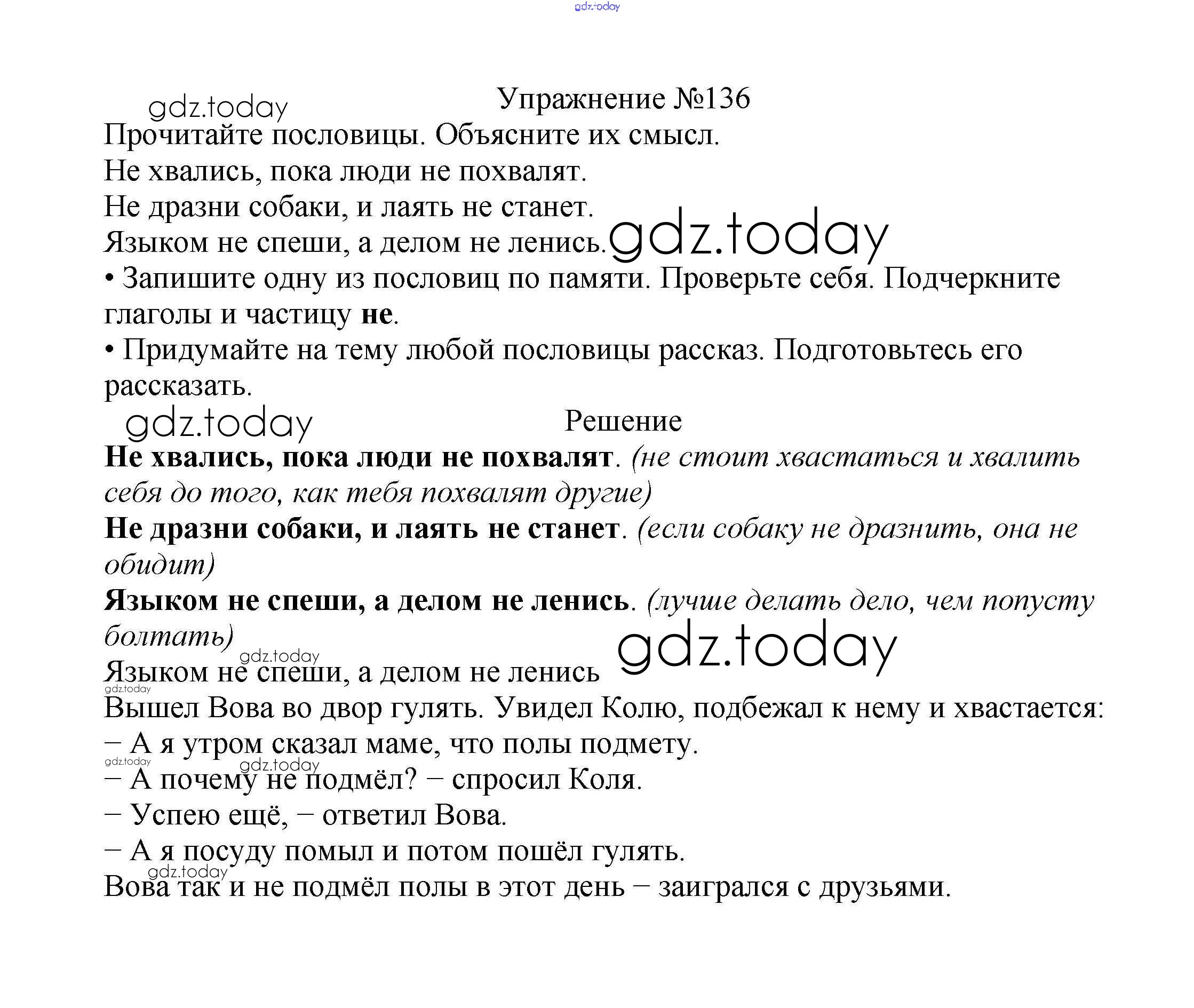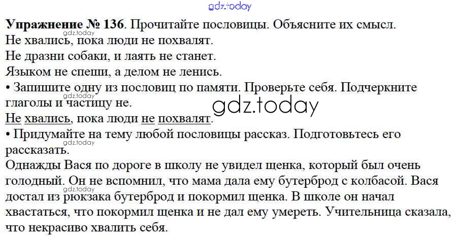 На страницах сайта gdz.today вы найдете учебный и вспомогательный материал, направленный на улучшения знаний школьной программы. ГДЗ - онлайн мир знаний Решение к части №2 (Упражнения) 136 Учебнику по Русскому языку для 2 класса Канакина, Горецкий Просвещение Школа России 2013