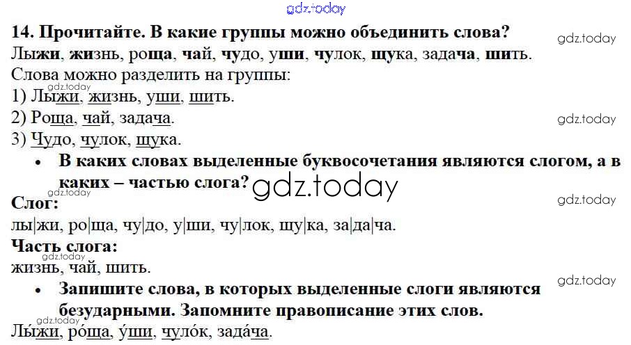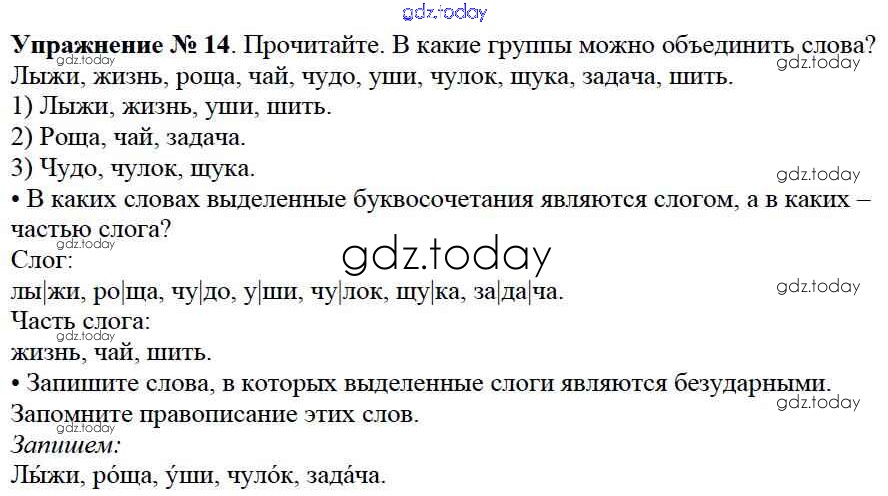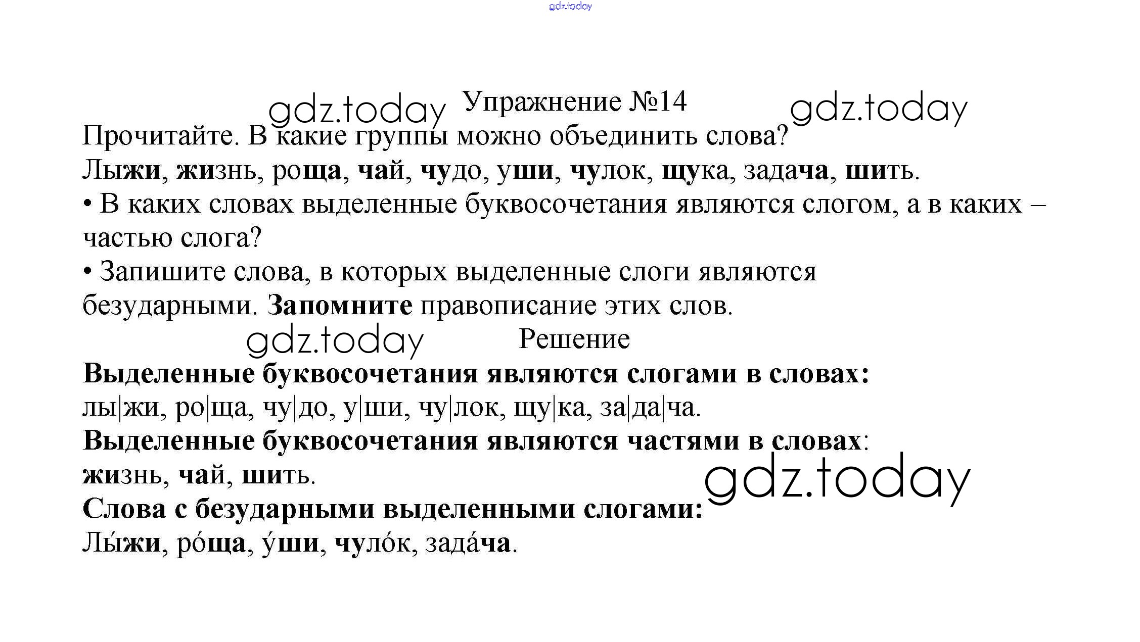 На страницах сайта gdz.today вы найдете учебный и вспомогательный материал, направленный на улучшения знаний школьной программы. ГДЗ - онлайн мир знаний Решение к части №2 (Упражнения) 14 Учебнику по Русскому языку для 2 класса Канакина, Горецкий Просвещение Школа России 2013
