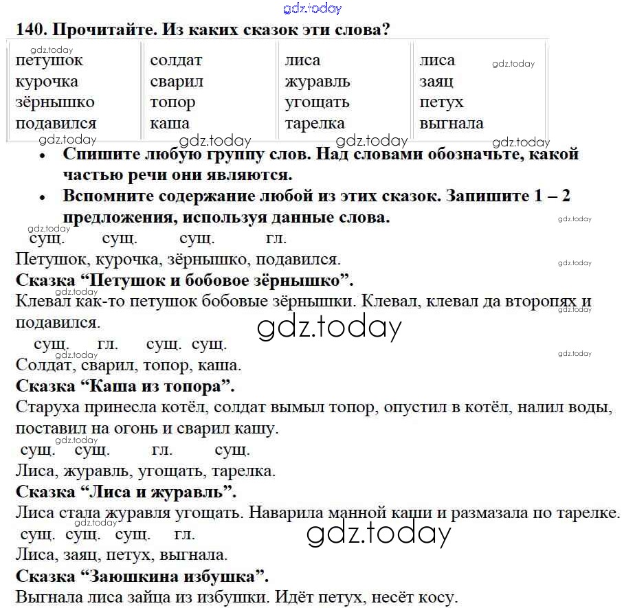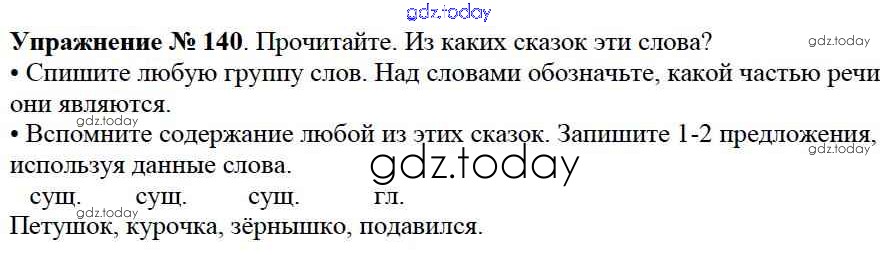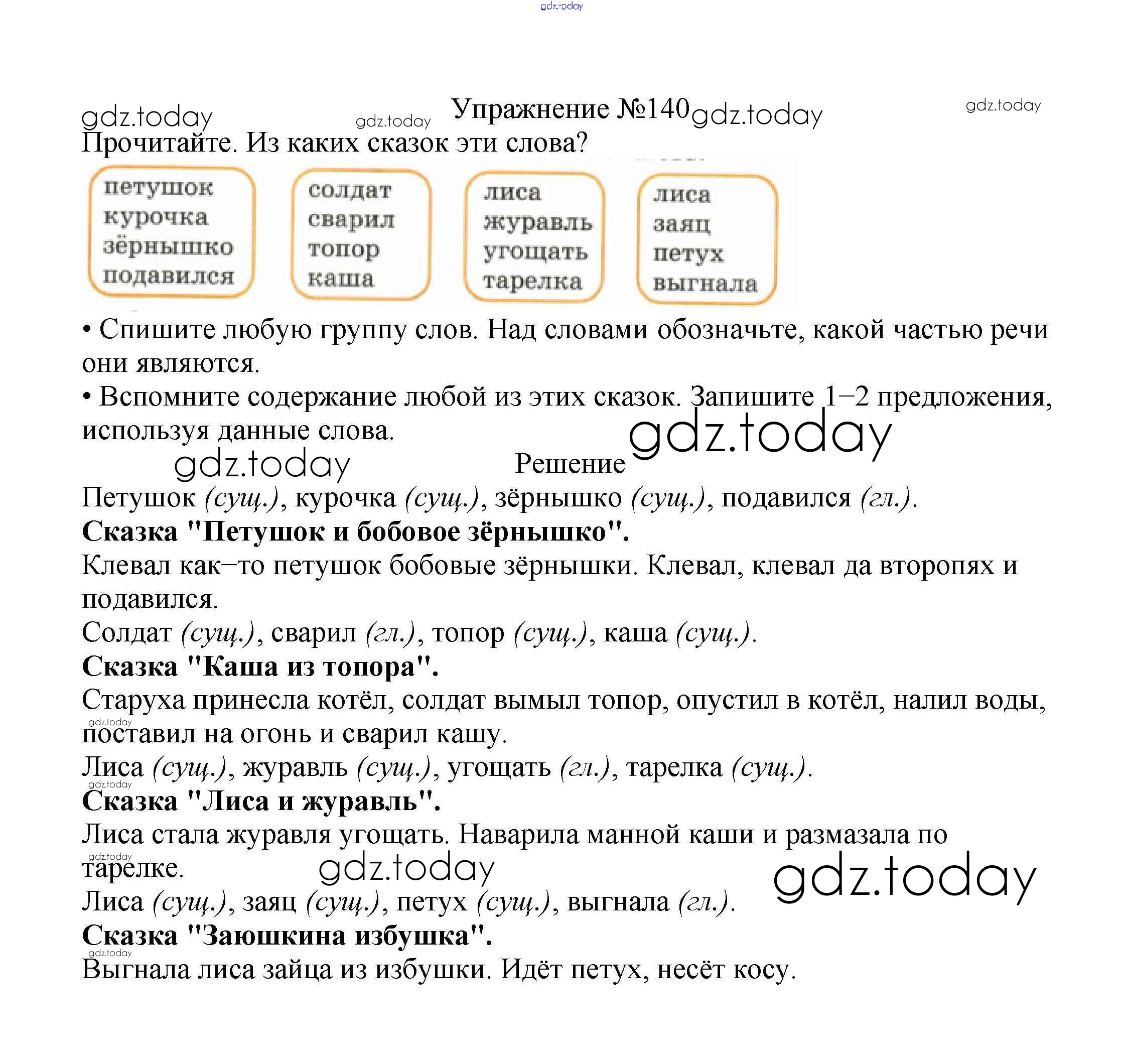 На страницах сайта gdz.today вы найдете учебный и вспомогательный материал, направленный на улучшения знаний школьной программы. ГДЗ - онлайн мир знаний Решение к части №2 (Упражнения) 140 Учебнику по Русскому языку для 2 класса Канакина, Горецкий Просвещение Школа России 2013