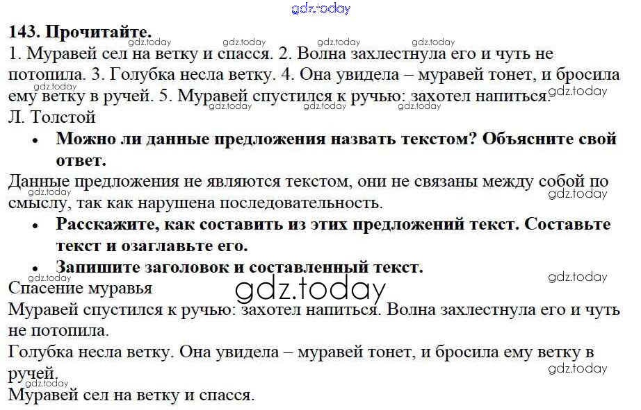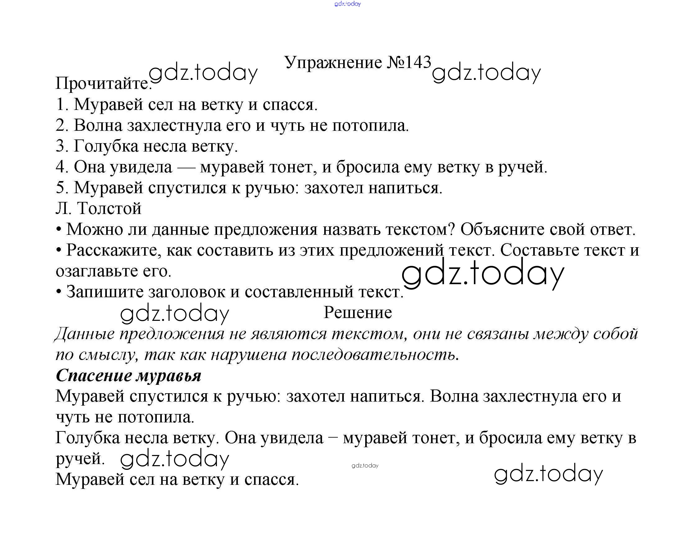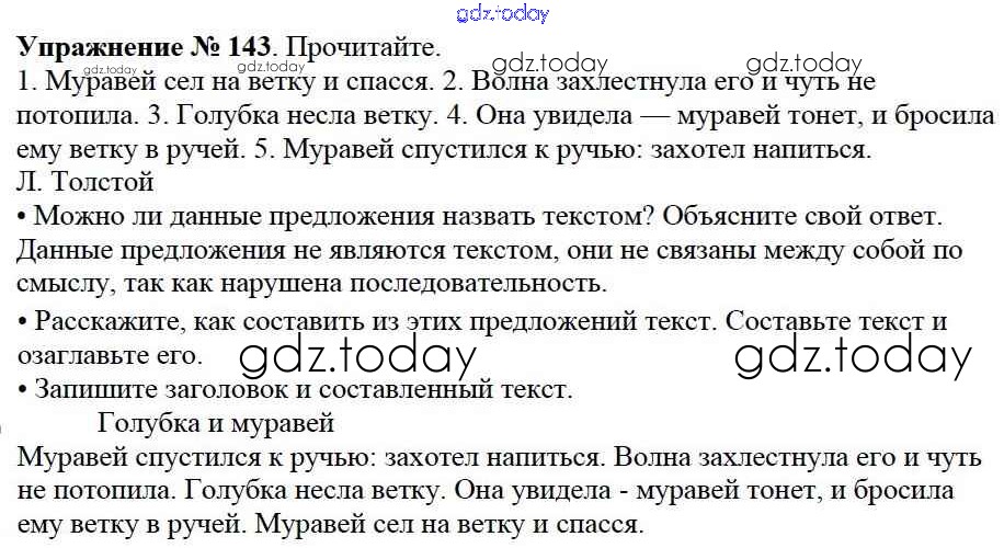 На страницах сайта gdz.today вы найдете учебный и вспомогательный материал, направленный на улучшения знаний школьной программы. ГДЗ - онлайн мир знаний Решение к части №2 (Упражнения) 143 Учебнику по Русскому языку для 2 класса Канакина, Горецкий Просвещение Школа России 2013