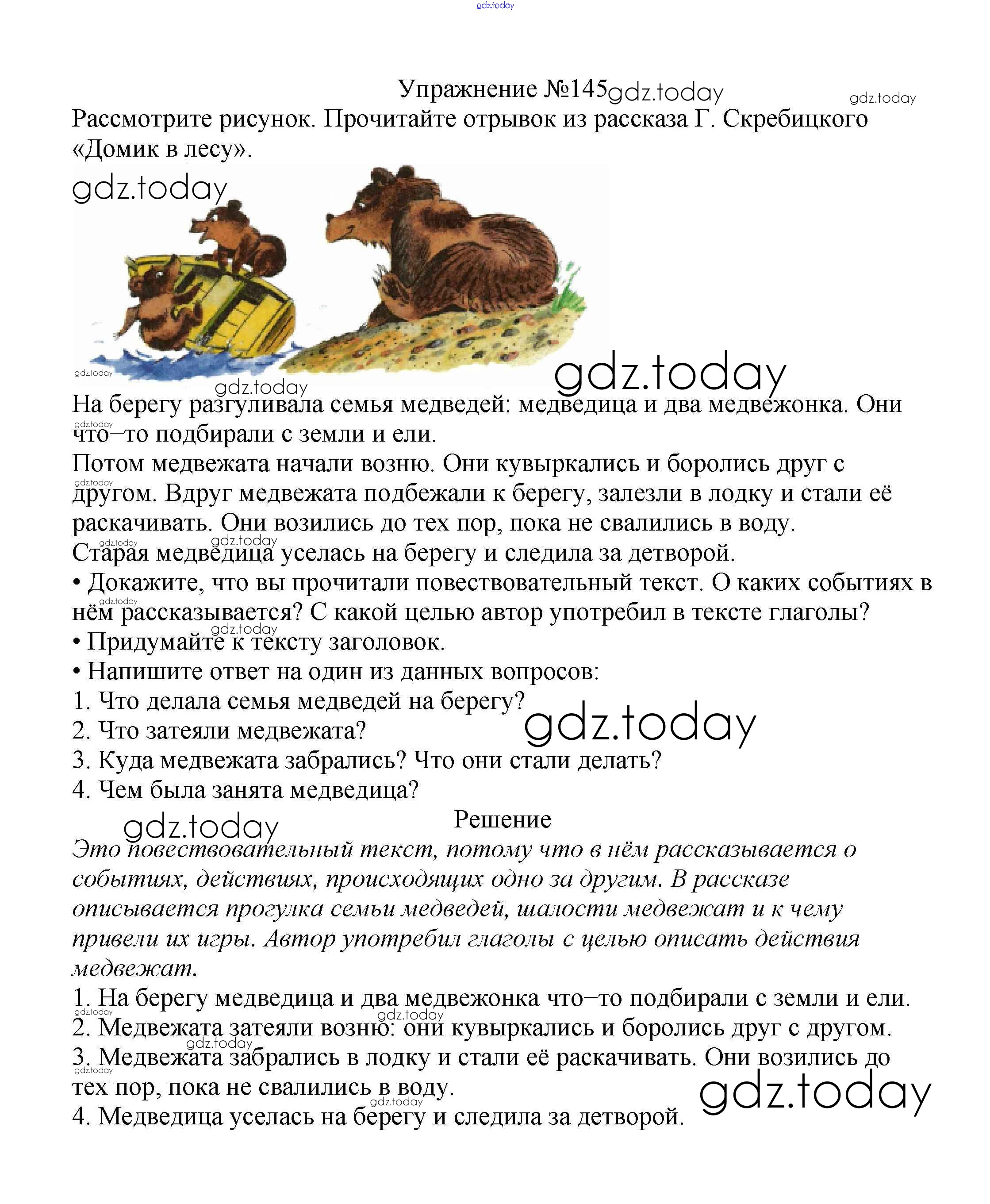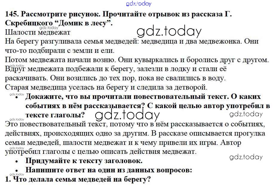 На страницах сайта gdz.today вы найдете учебный и вспомогательный материал, направленный на улучшения знаний школьной программы. ГДЗ - онлайн мир знаний Решение к части №2 (Упражнения) 145 Учебнику по Русскому языку для 2 класса Канакина, Горецкий Просвещение Школа России 2013