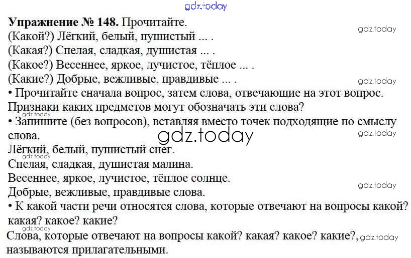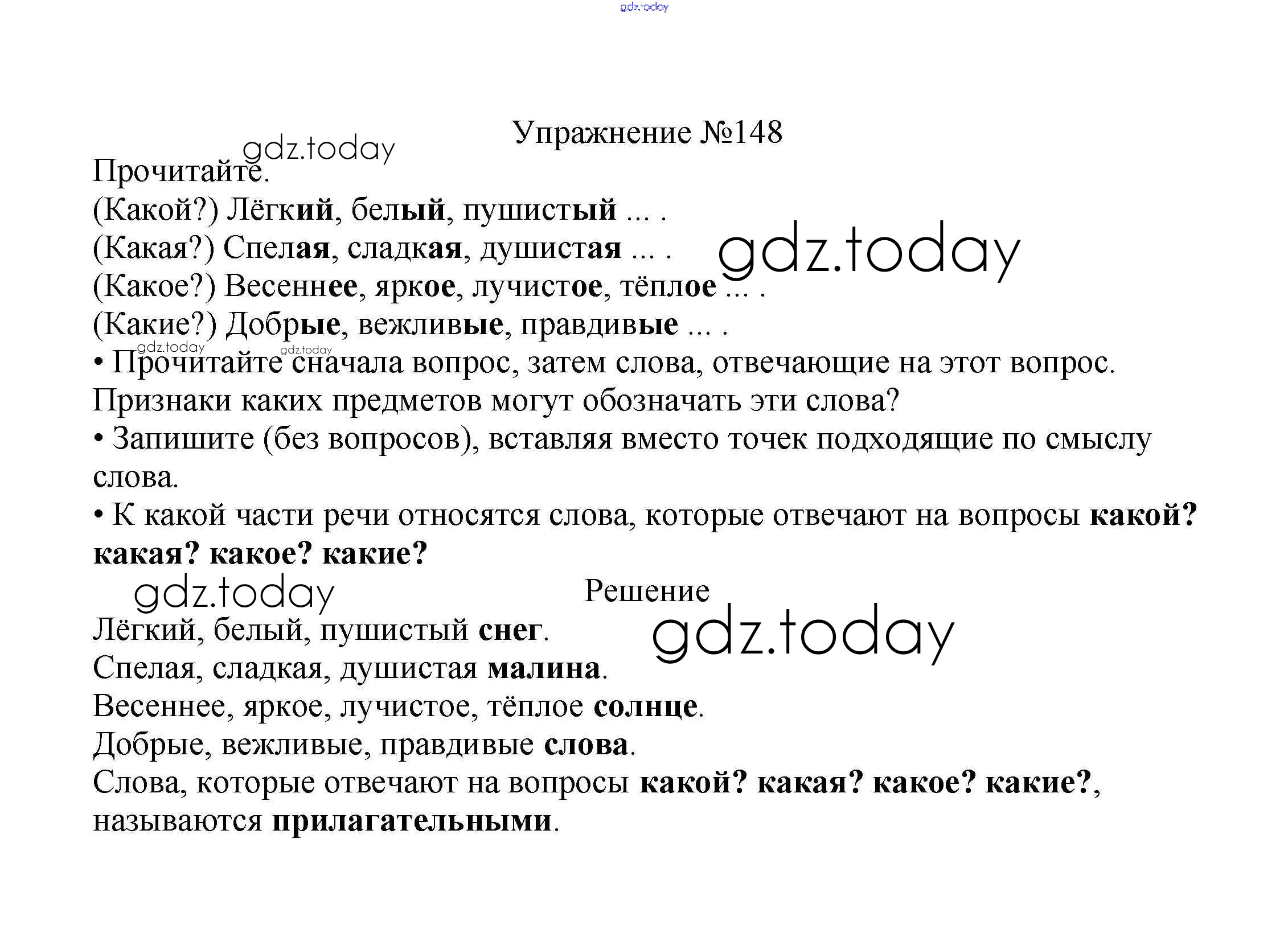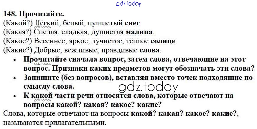 На страницах сайта gdz.today вы найдете учебный и вспомогательный материал, направленный на улучшения знаний школьной программы. ГДЗ - онлайн мир знаний Решение к части №2 (Упражнения) 148 Учебнику по Русскому языку для 2 класса Канакина, Горецкий Просвещение Школа России 2013