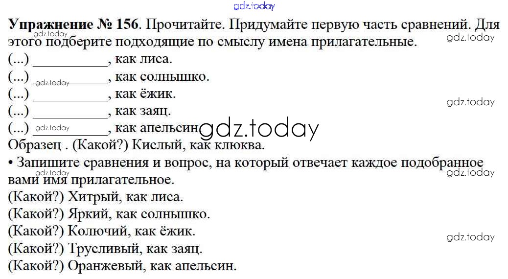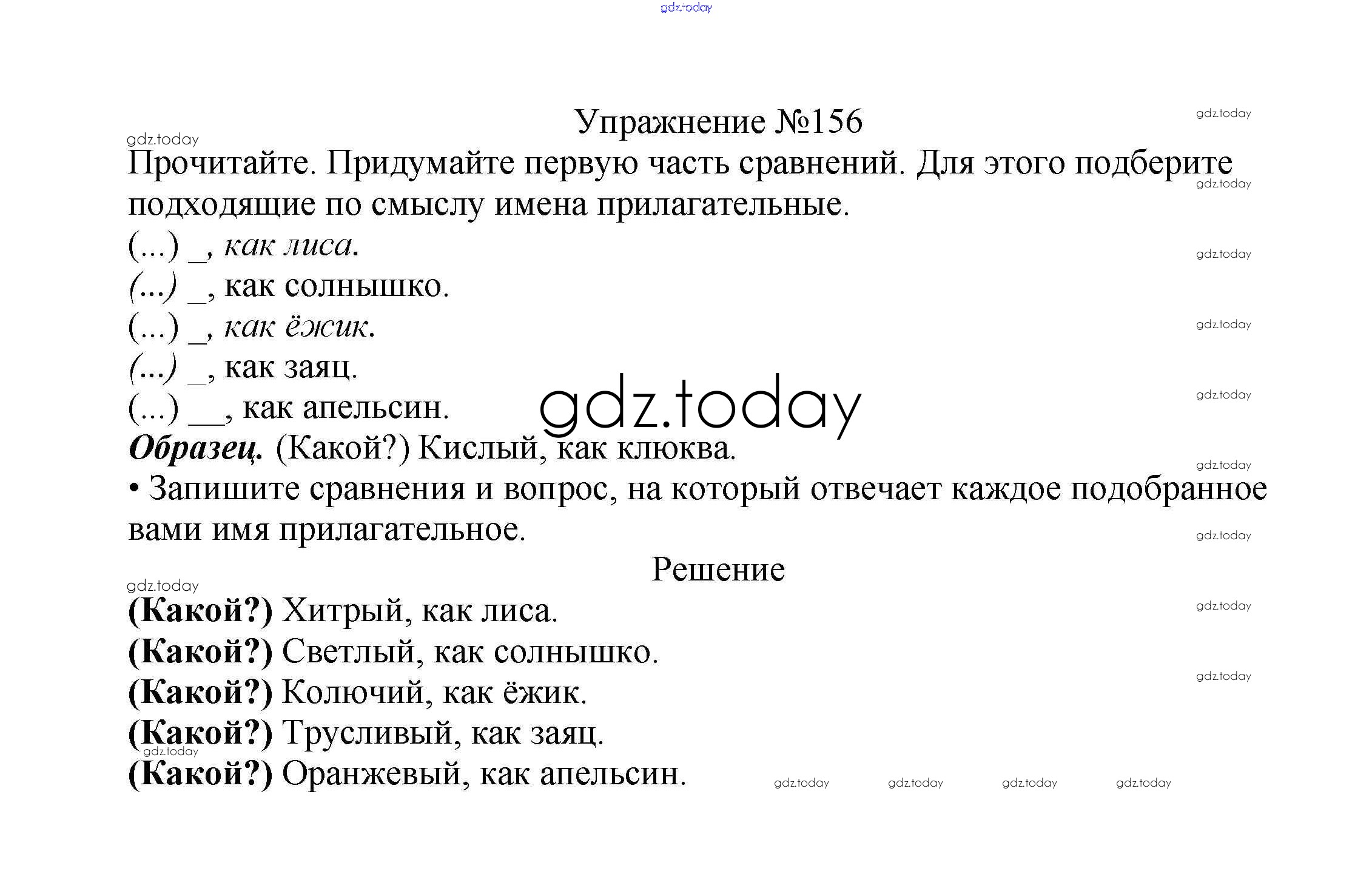На страницах сайта gdz.today вы найдете учебный и вспомогательный материал, направленный на улучшения знаний школьной программы. ГДЗ - онлайн мир знаний Решение к части №2 (Упражнения) 156 Учебнику по Русскому языку для 2 класса Канакина, Горецкий Просвещение Школа России 2013