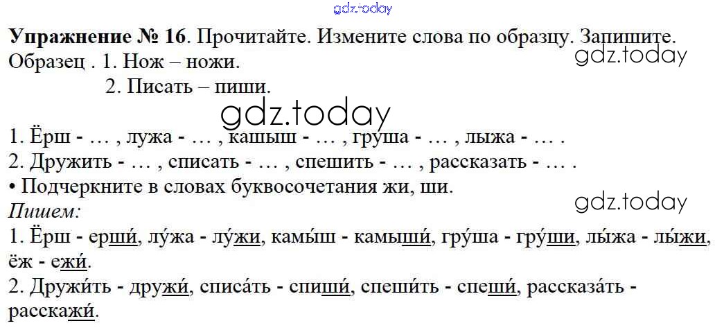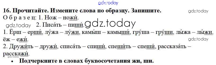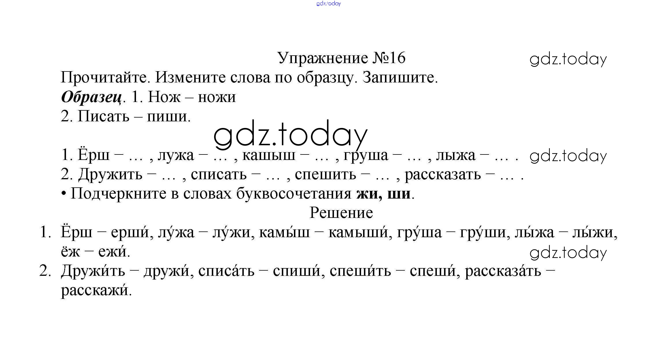 На страницах сайта gdz.today вы найдете учебный и вспомогательный материал, направленный на улучшения знаний школьной программы. ГДЗ - онлайн мир знаний Решение к части №2 (Упражнения) 16 Учебнику по Русскому языку для 2 класса Канакина, Горецкий Просвещение Школа России 2013