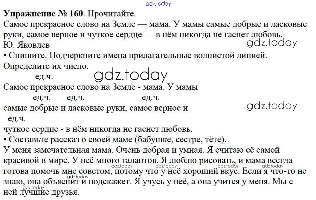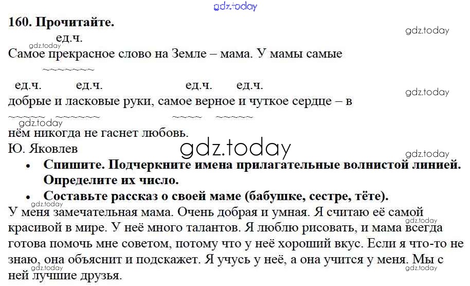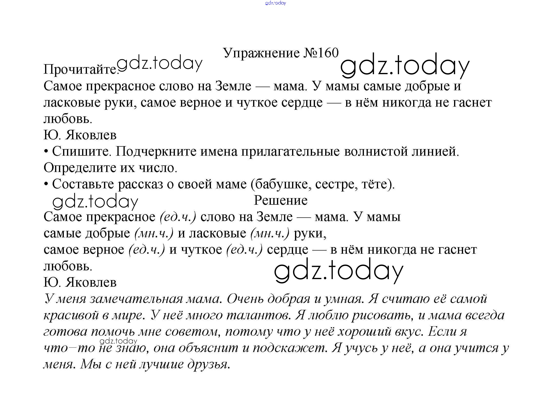 На страницах сайта gdz.today вы найдете учебный и вспомогательный материал, направленный на улучшения знаний школьной программы. ГДЗ - онлайн мир знаний Решение к части №2 (Упражнения) 160 Учебнику по Русскому языку для 2 класса Канакина, Горецкий Просвещение Школа России 2013