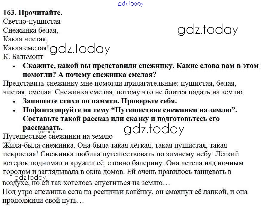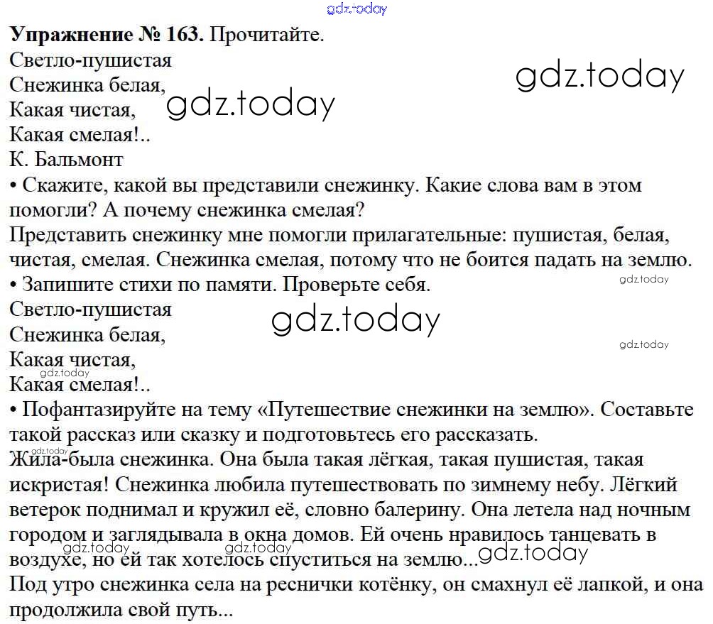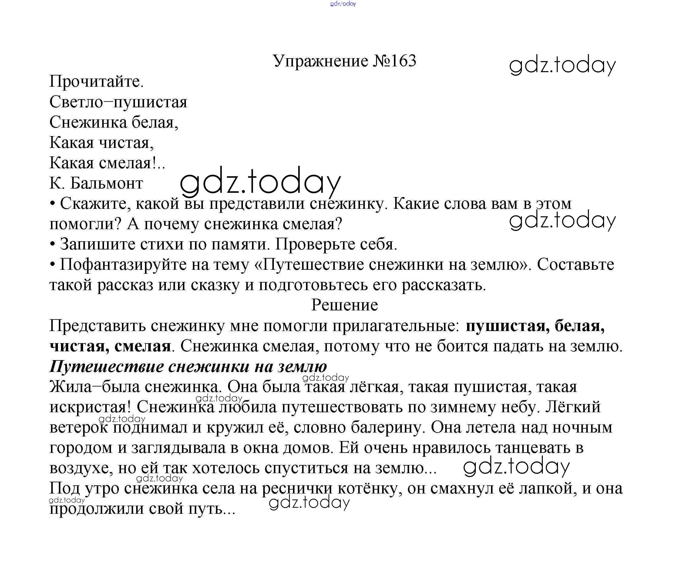 На страницах сайта gdz.today вы найдете учебный и вспомогательный материал, направленный на улучшения знаний школьной программы. ГДЗ - онлайн мир знаний Решение к части №2 (Упражнения) 163 Учебнику по Русскому языку для 2 класса Канакина, Горецкий Просвещение Школа России 2013