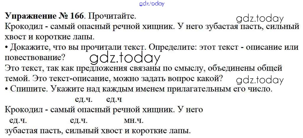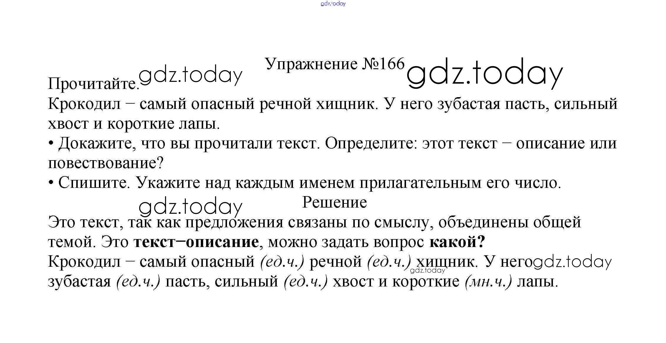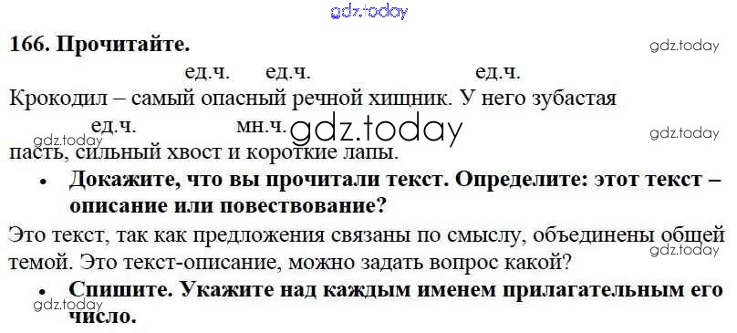 На страницах сайта gdz.today вы найдете учебный и вспомогательный материал, направленный на улучшения знаний школьной программы. ГДЗ - онлайн мир знаний Решение к части №2 (Упражнения) 166 Учебнику по Русскому языку для 2 класса Канакина, Горецкий Просвещение Школа России 2013