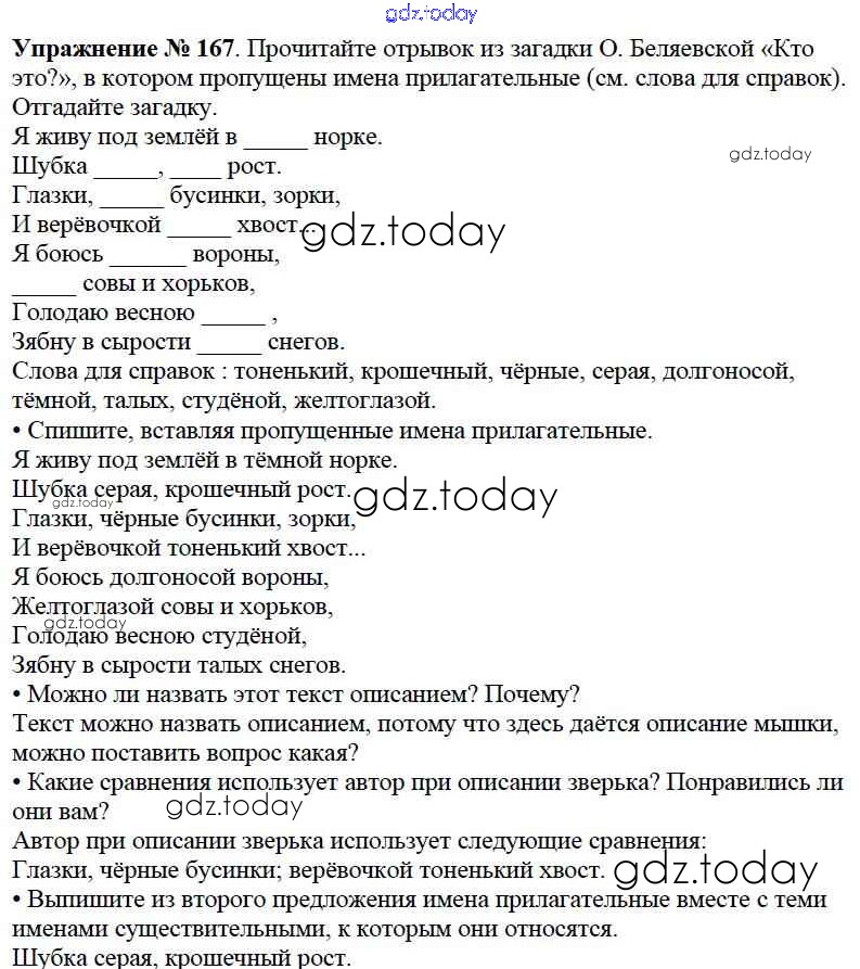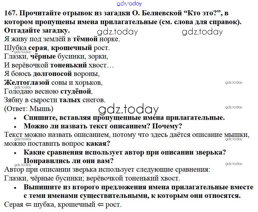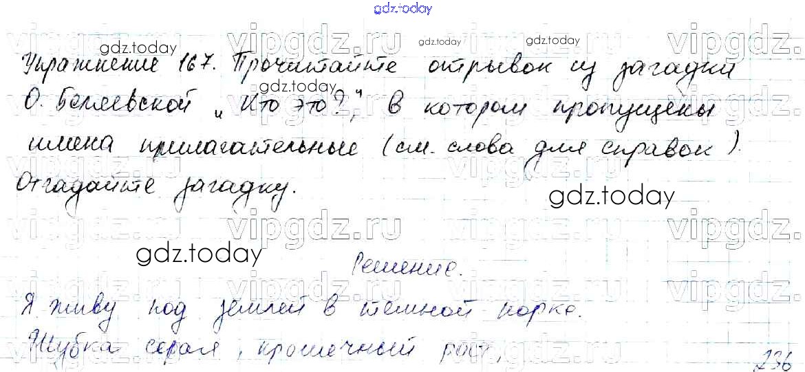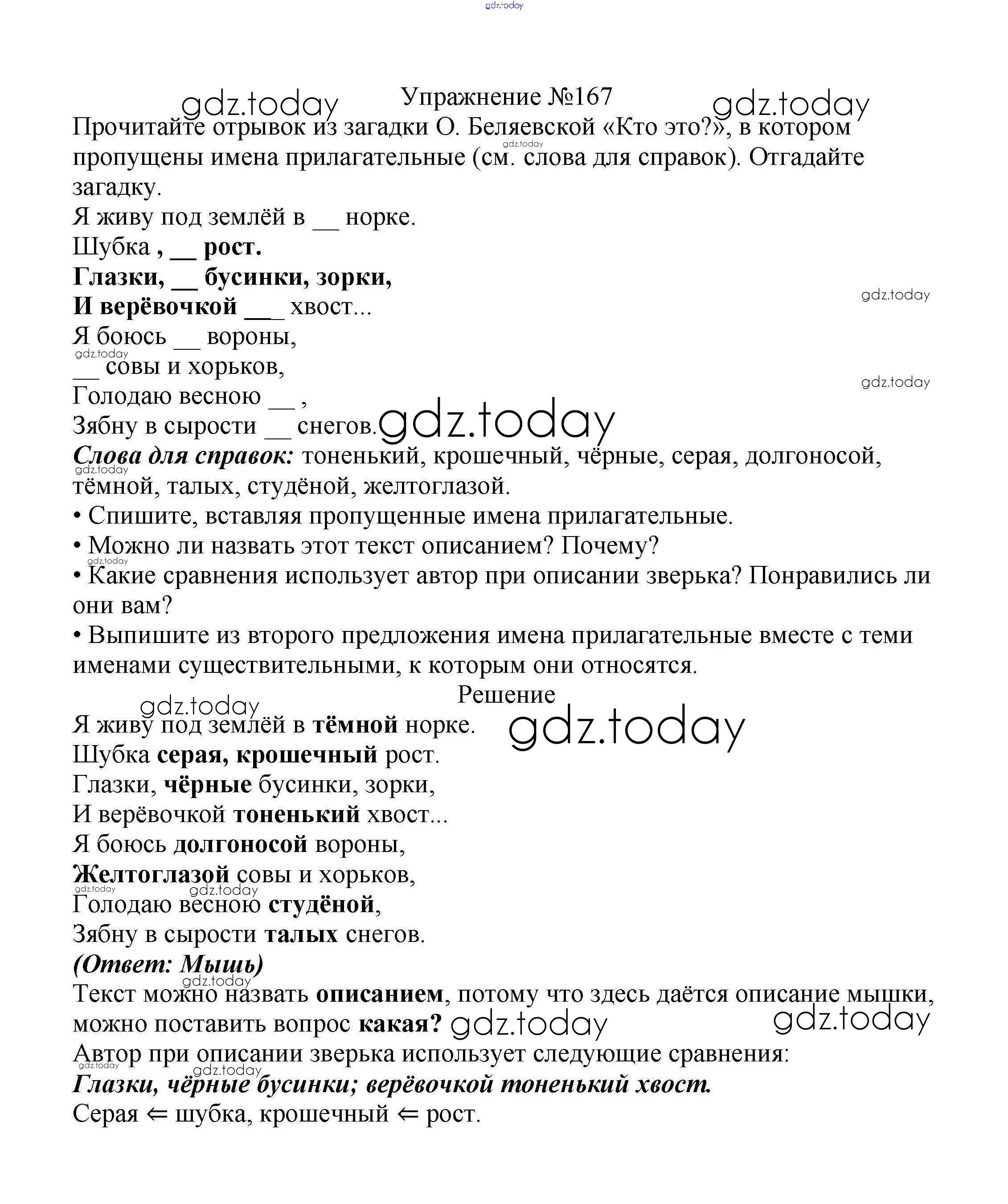 На страницах сайта gdz.today вы найдете учебный и вспомогательный материал, направленный на улучшения знаний школьной программы. ГДЗ - онлайн мир знаний Решение к части №2 (Упражнения) 167 Учебнику по Русскому языку для 2 класса Канакина, Горецкий Просвещение Школа России 2013