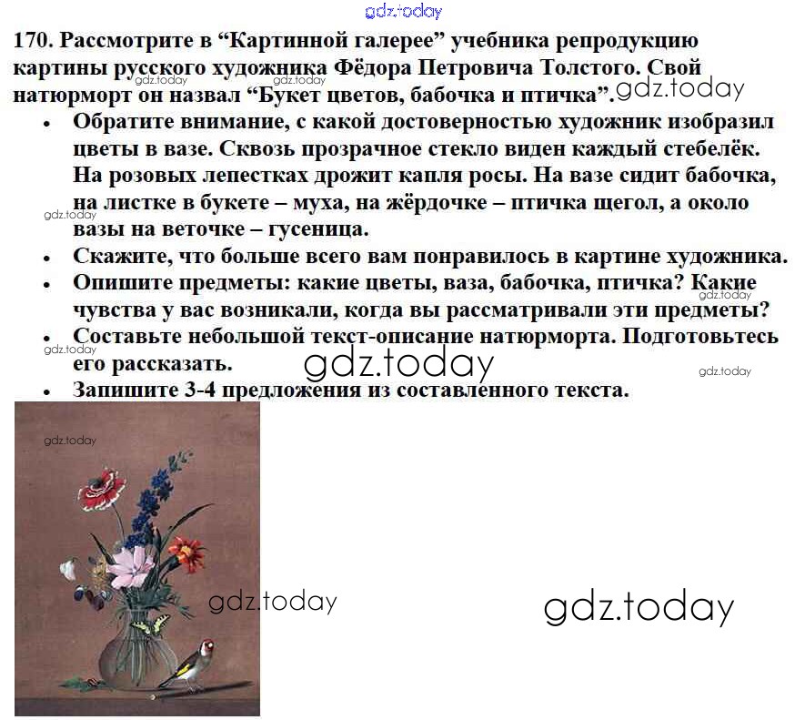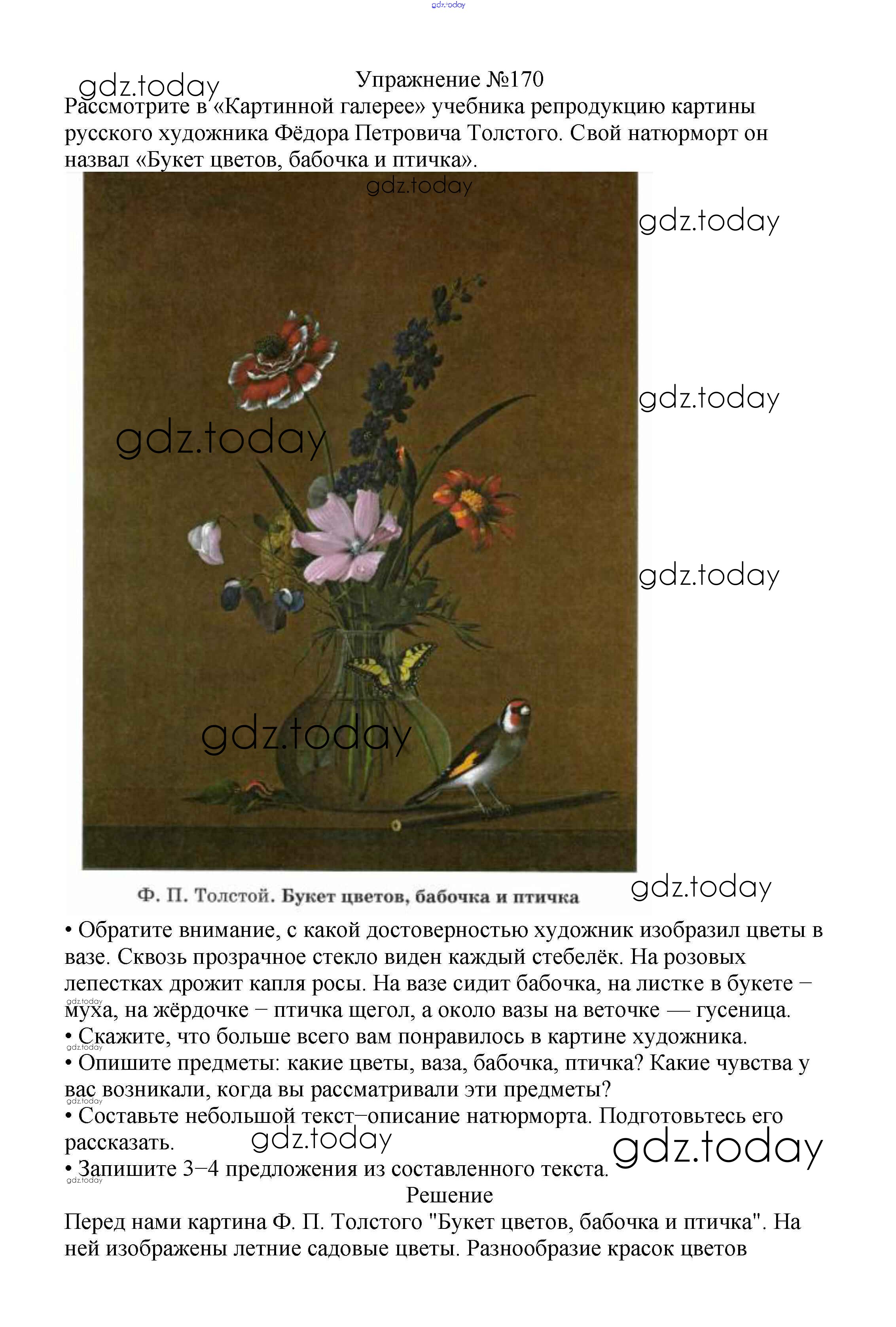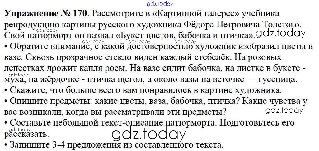 На страницах сайта gdz.today вы найдете учебный и вспомогательный материал, направленный на улучшения знаний школьной программы. ГДЗ - онлайн мир знаний Решение к части №2 (Упражнения) 170 Учебнику по Русскому языку для 2 класса Канакина, Горецкий Просвещение Школа России 2013