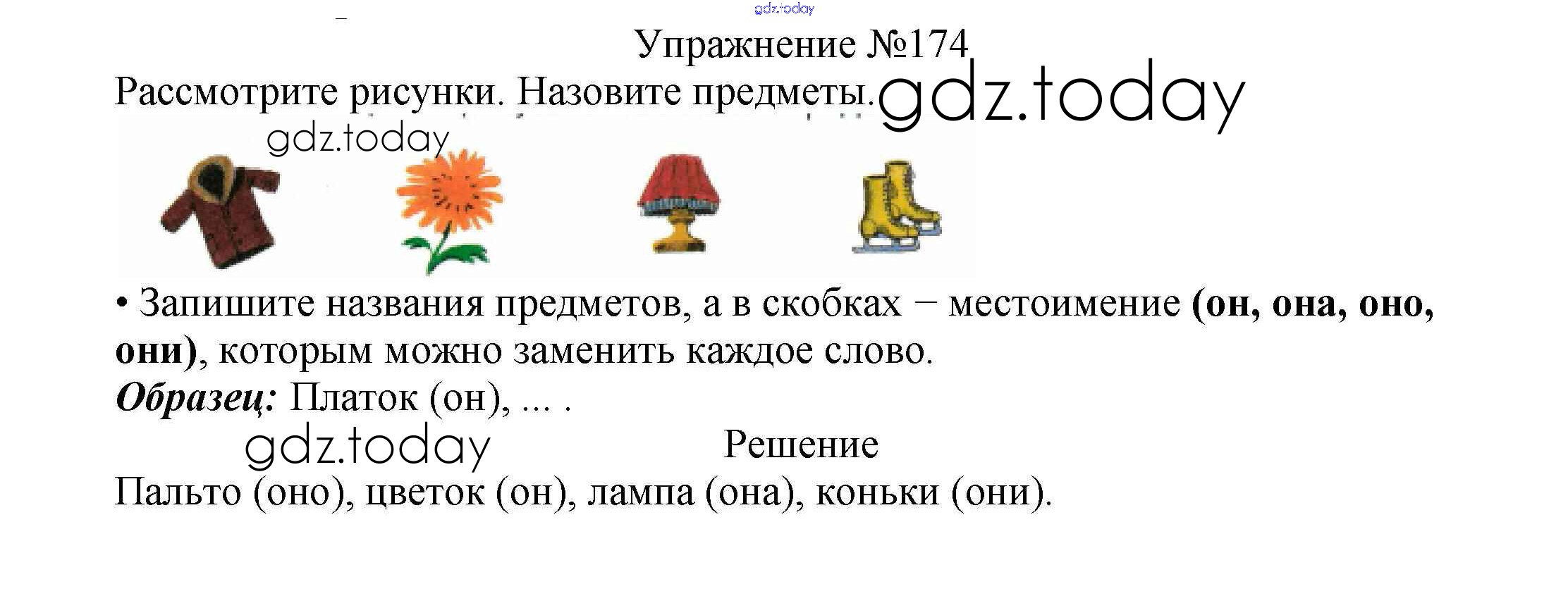 На страницах сайта gdz.today вы найдете учебный и вспомогательный материал, направленный на улучшения знаний школьной программы. ГДЗ - онлайн мир знаний Решение к части №2 (Упражнения) 174 Учебнику по Русскому языку для 2 класса Канакина, Горецкий Просвещение Школа России 2013