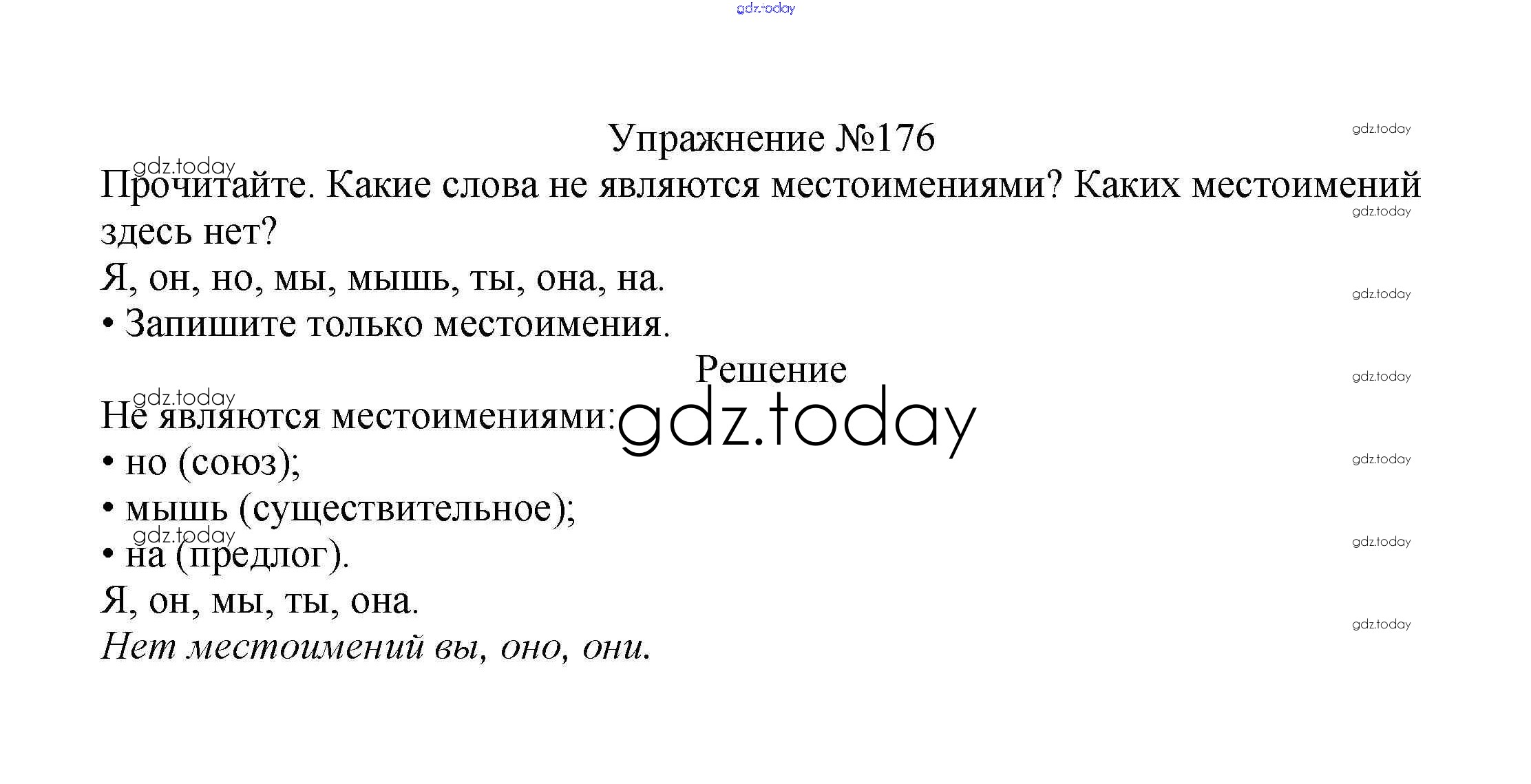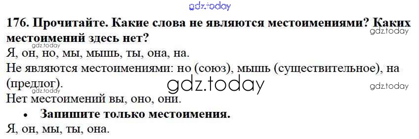 На страницах сайта gdz.today вы найдете учебный и вспомогательный материал, направленный на улучшения знаний школьной программы. ГДЗ - онлайн мир знаний Решение к части №2 (Упражнения) 176 Учебнику по Русскому языку для 2 класса Канакина, Горецкий Просвещение Школа России 2013