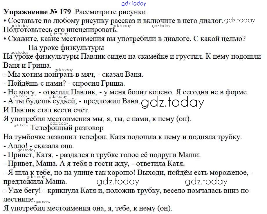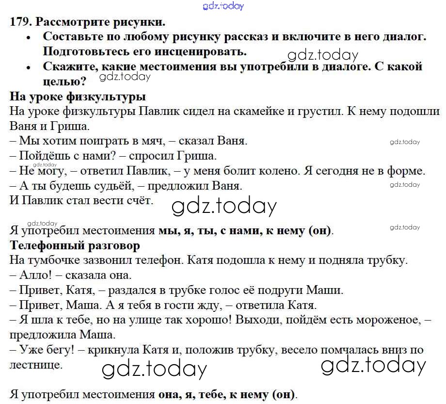 На страницах сайта gdz.today вы найдете учебный и вспомогательный материал, направленный на улучшения знаний школьной программы. ГДЗ - онлайн мир знаний Решение к части №2 (Упражнения) 179 Учебнику по Русскому языку для 2 класса Канакина, Горецкий Просвещение Школа России 2013