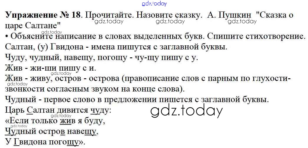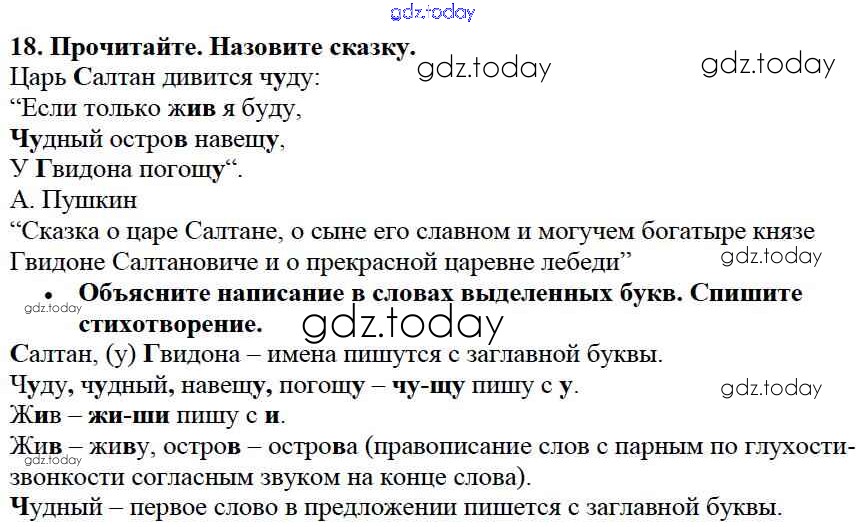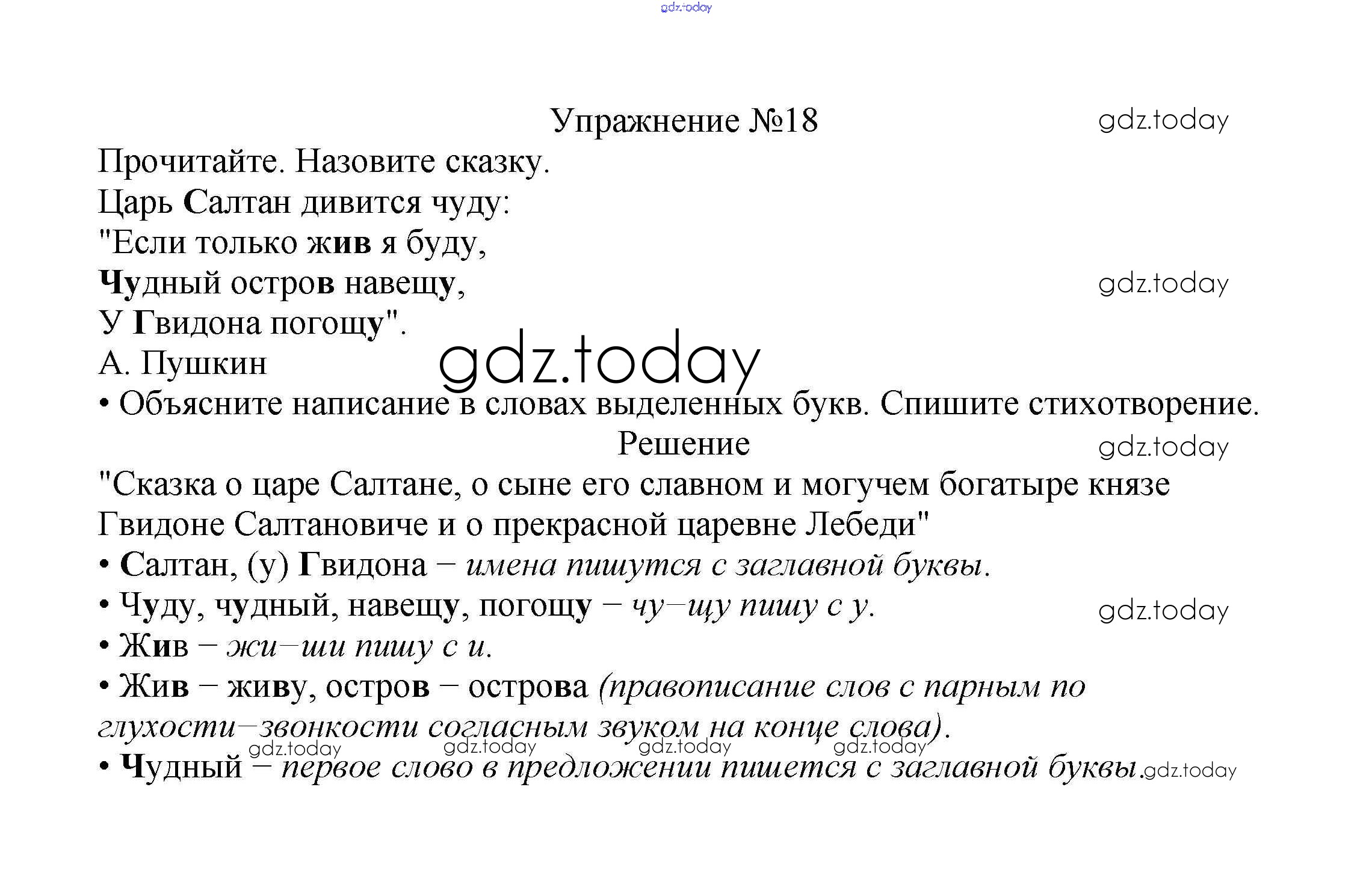 На страницах сайта gdz.today вы найдете учебный и вспомогательный материал, направленный на улучшения знаний школьной программы. ГДЗ - онлайн мир знаний Решение к части №2 (Упражнения) 18 Учебнику по Русскому языку для 2 класса Канакина, Горецкий Просвещение Школа России 2013