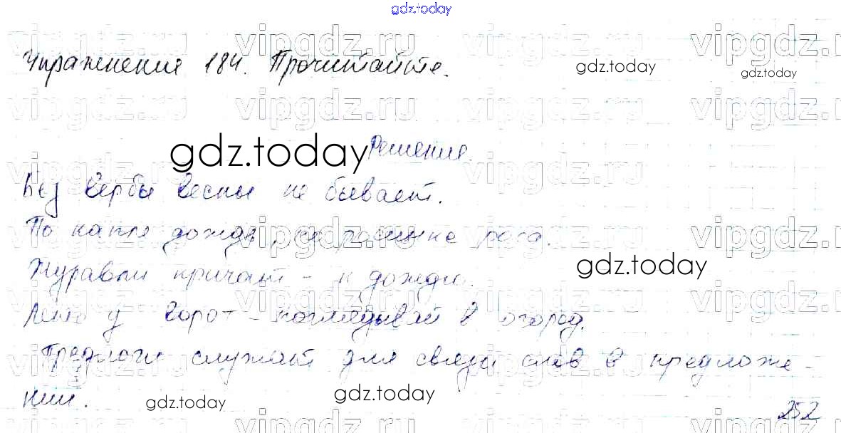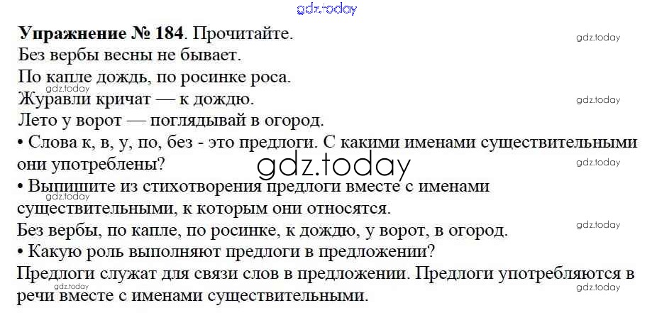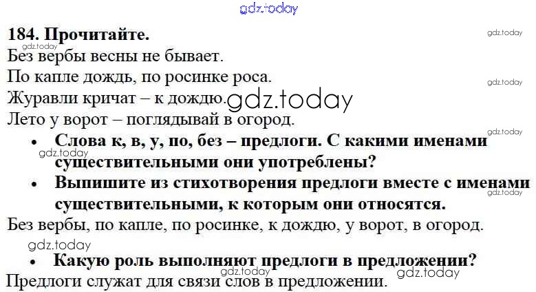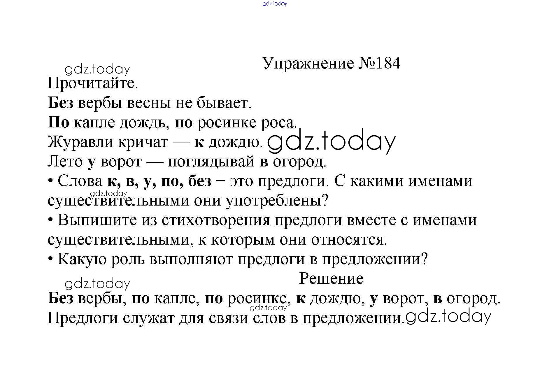 На страницах сайта gdz.today вы найдете учебный и вспомогательный материал, направленный на улучшения знаний школьной программы. ГДЗ - онлайн мир знаний Решение к части №2 (Упражнения) 184 Учебнику по Русскому языку для 2 класса Канакина, Горецкий Просвещение Школа России 2013