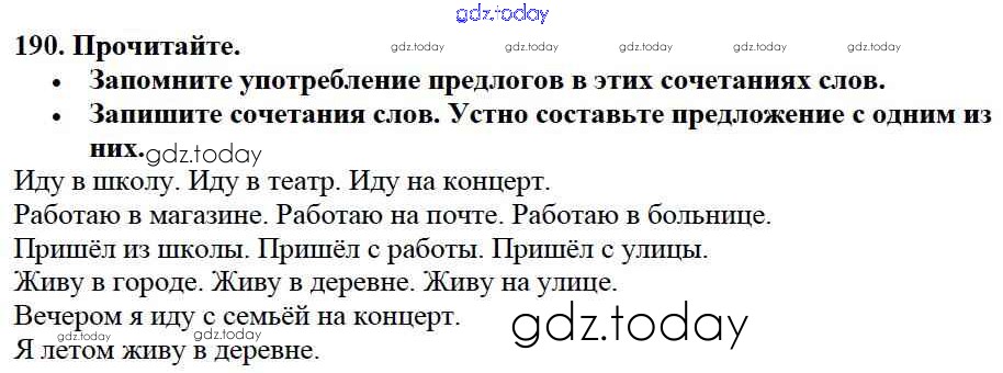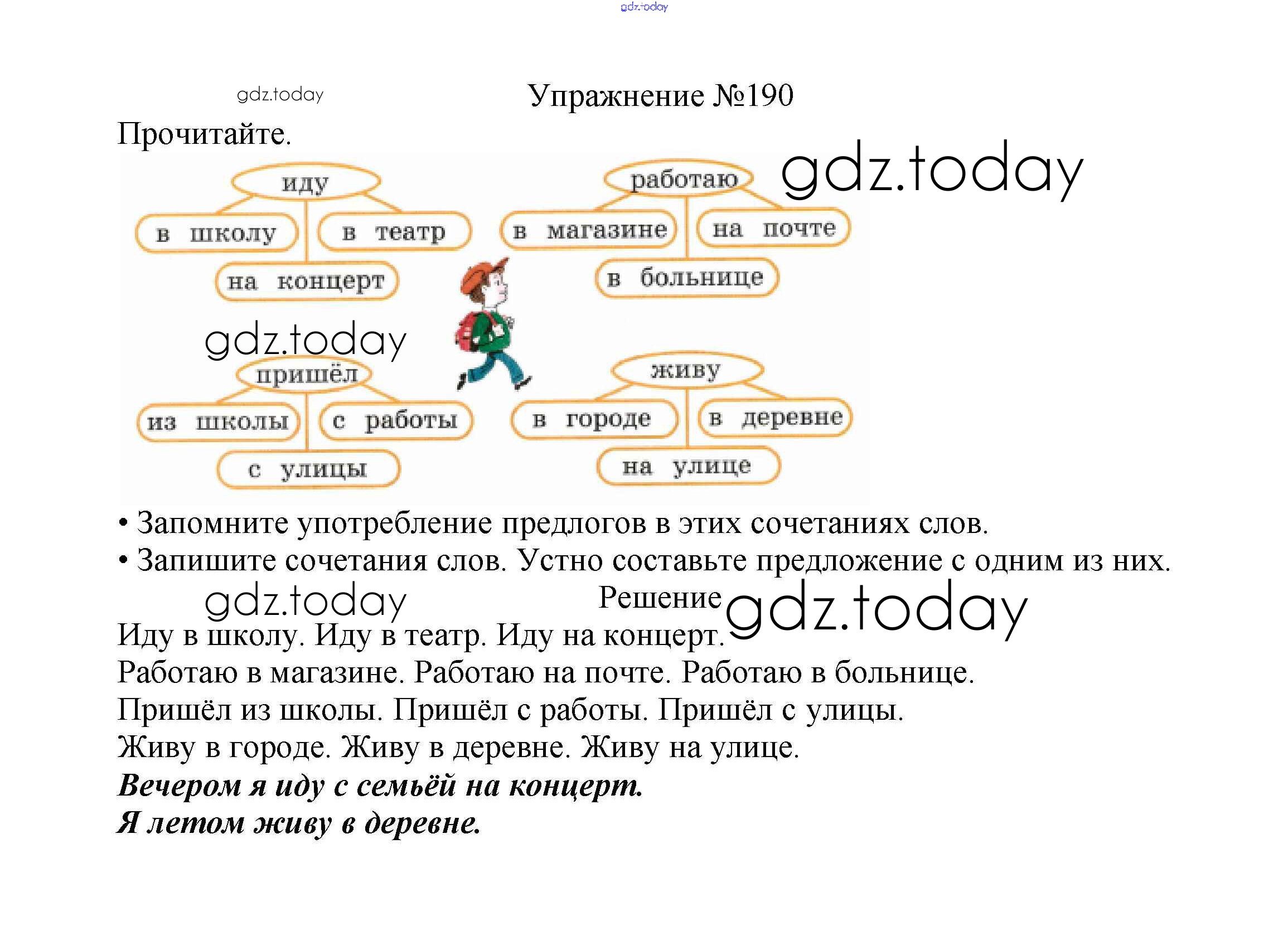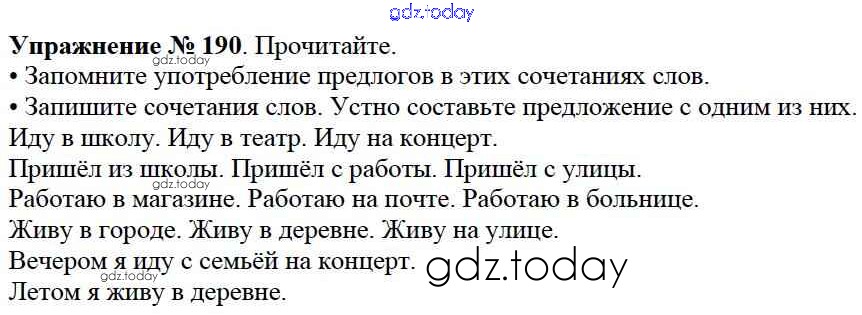 На страницах сайта gdz.today вы найдете учебный и вспомогательный материал, направленный на улучшения знаний школьной программы. ГДЗ - онлайн мир знаний Решение к части №2 (Упражнения) 190 Учебнику по Русскому языку для 2 класса Канакина, Горецкий Просвещение Школа России 2013