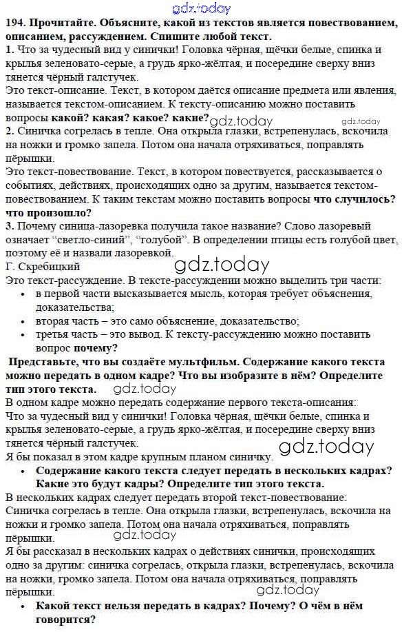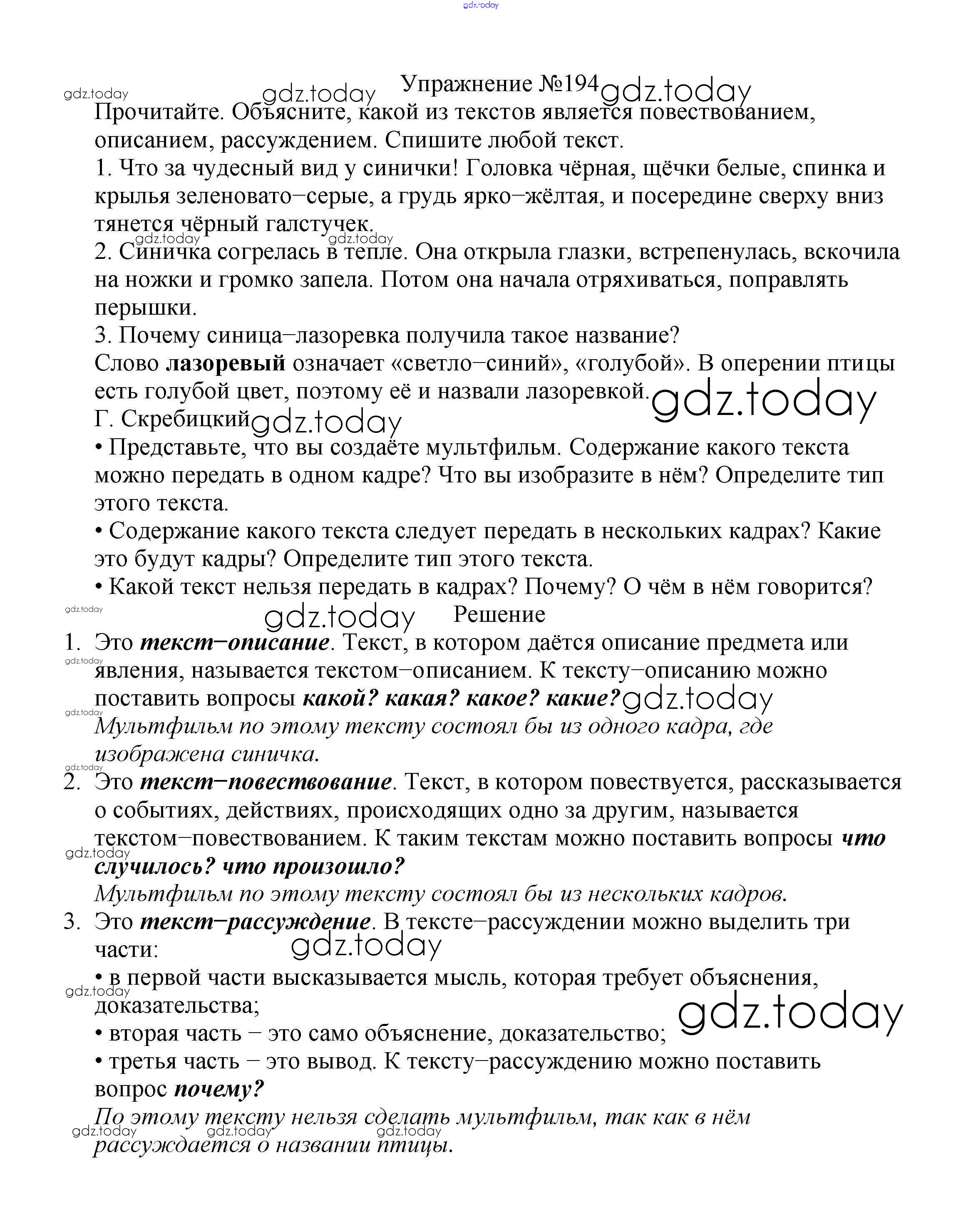 На страницах сайта gdz.today вы найдете учебный и вспомогательный материал, направленный на улучшения знаний школьной программы. ГДЗ - онлайн мир знаний Решение к части №2 (Упражнения) 194 Учебнику по Русскому языку для 2 класса Канакина, Горецкий Просвещение Школа России 2013