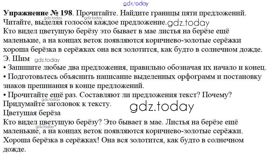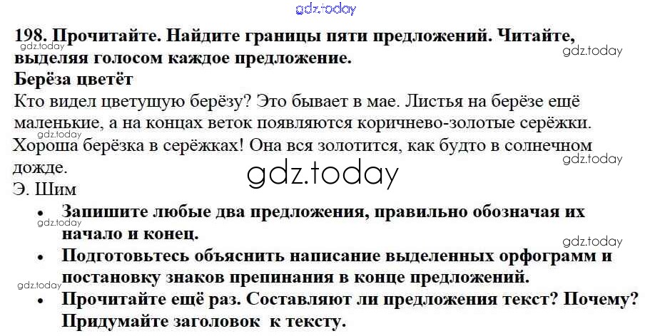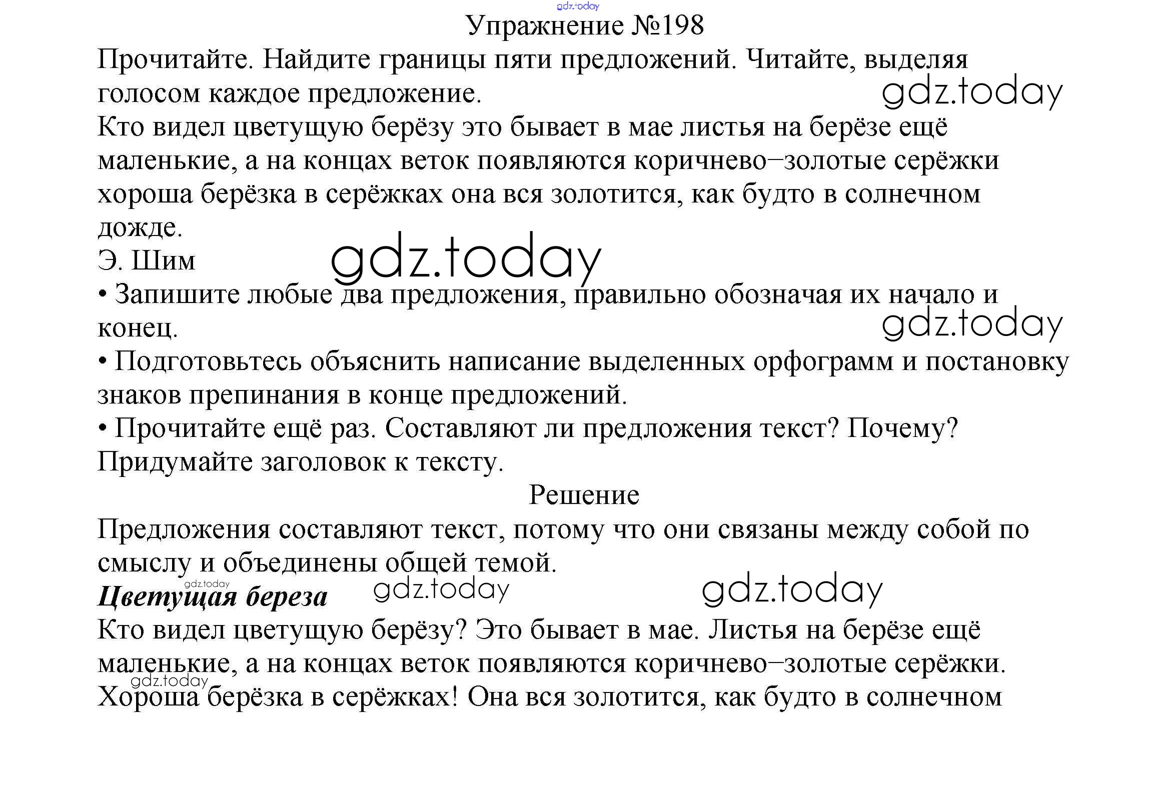 На страницах сайта gdz.today вы найдете учебный и вспомогательный материал, направленный на улучшения знаний школьной программы. ГДЗ - онлайн мир знаний Решение к части №2 (Упражнения) 198 Учебнику по Русскому языку для 2 класса Канакина, Горецкий Просвещение Школа России 2013