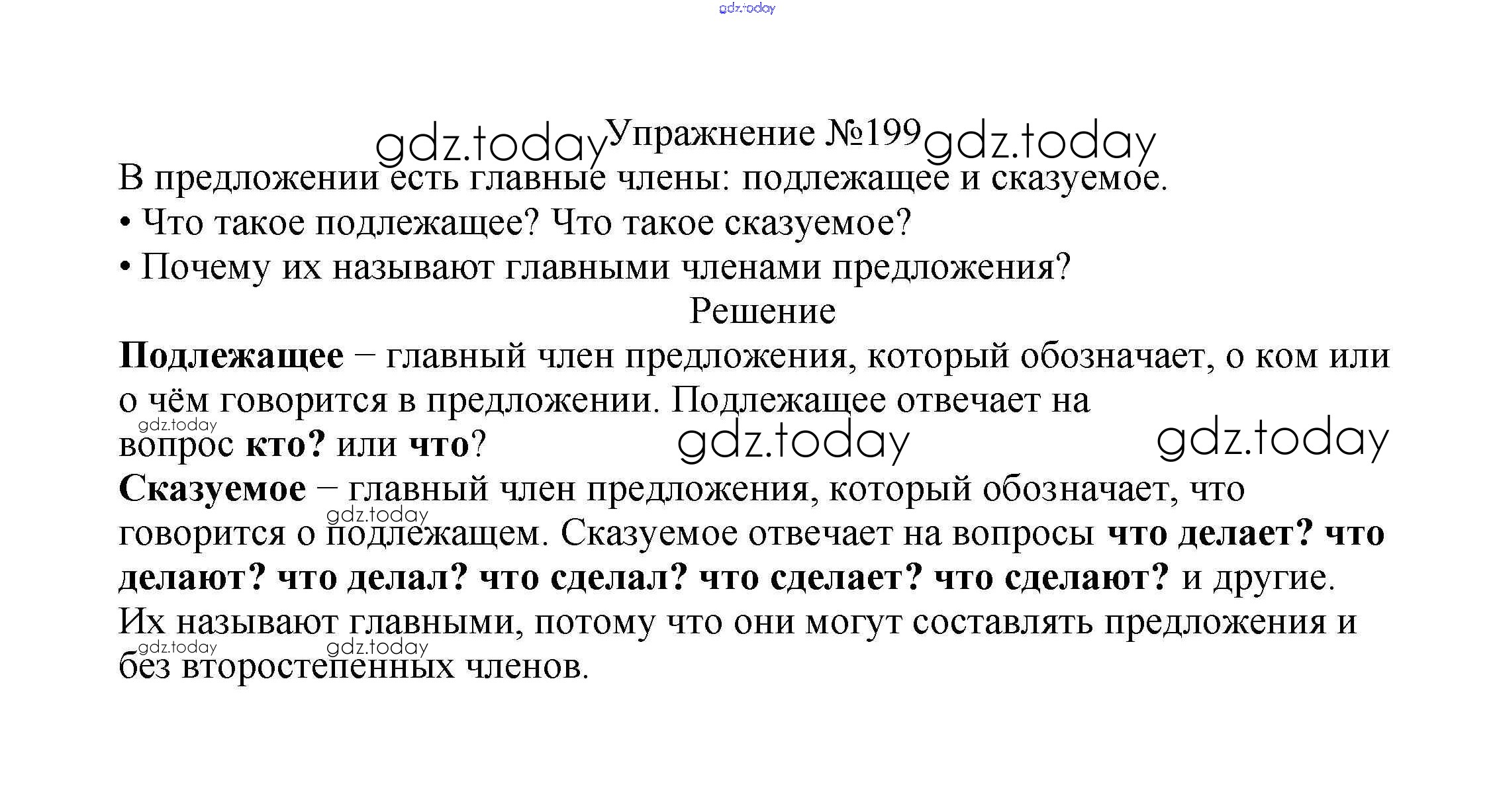 На страницах сайта gdz.today вы найдете учебный и вспомогательный материал, направленный на улучшения знаний школьной программы. ГДЗ - онлайн мир знаний Решение к части №2 (Упражнения) 199 Учебнику по Русскому языку для 2 класса Канакина, Горецкий Просвещение Школа России 2013