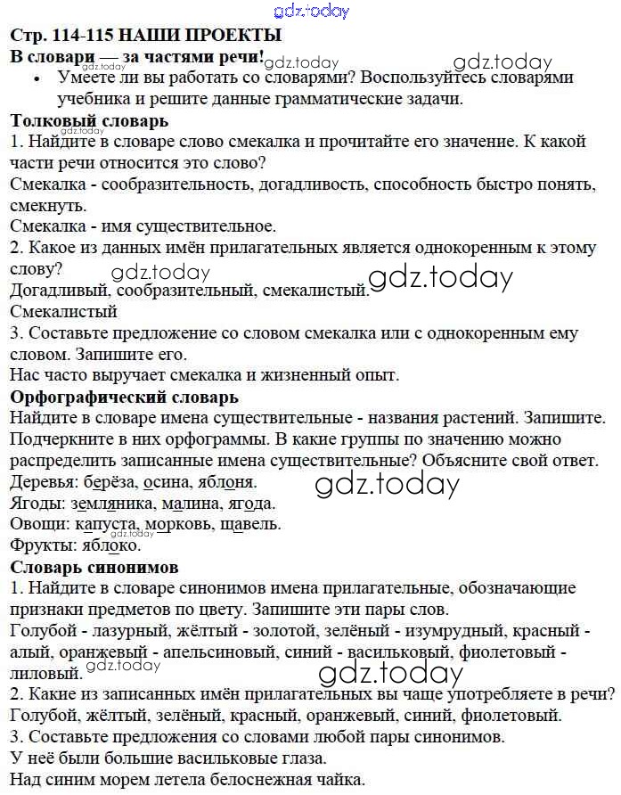На страницах сайта gdz.today вы найдете учебный и вспомогательный материал, направленный на улучшения знаний школьной программы. ГДЗ - онлайн мир знаний Наши проекты Решение к части №2 (Упражнения) стр. 114 Учебнику по Русскому языку для 2 класса Канакина, Горецкий Просвещение Школа России 2013